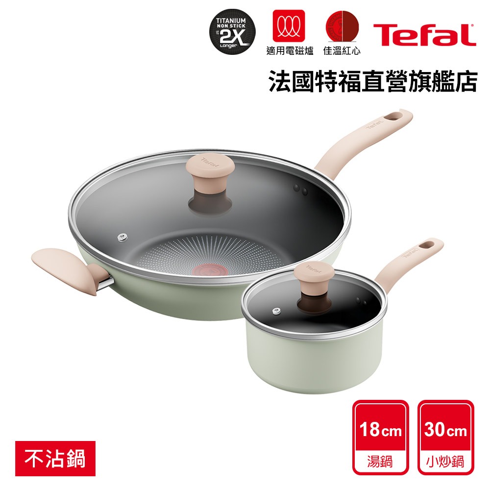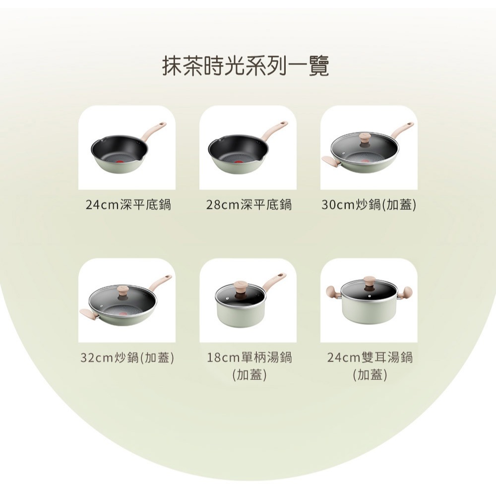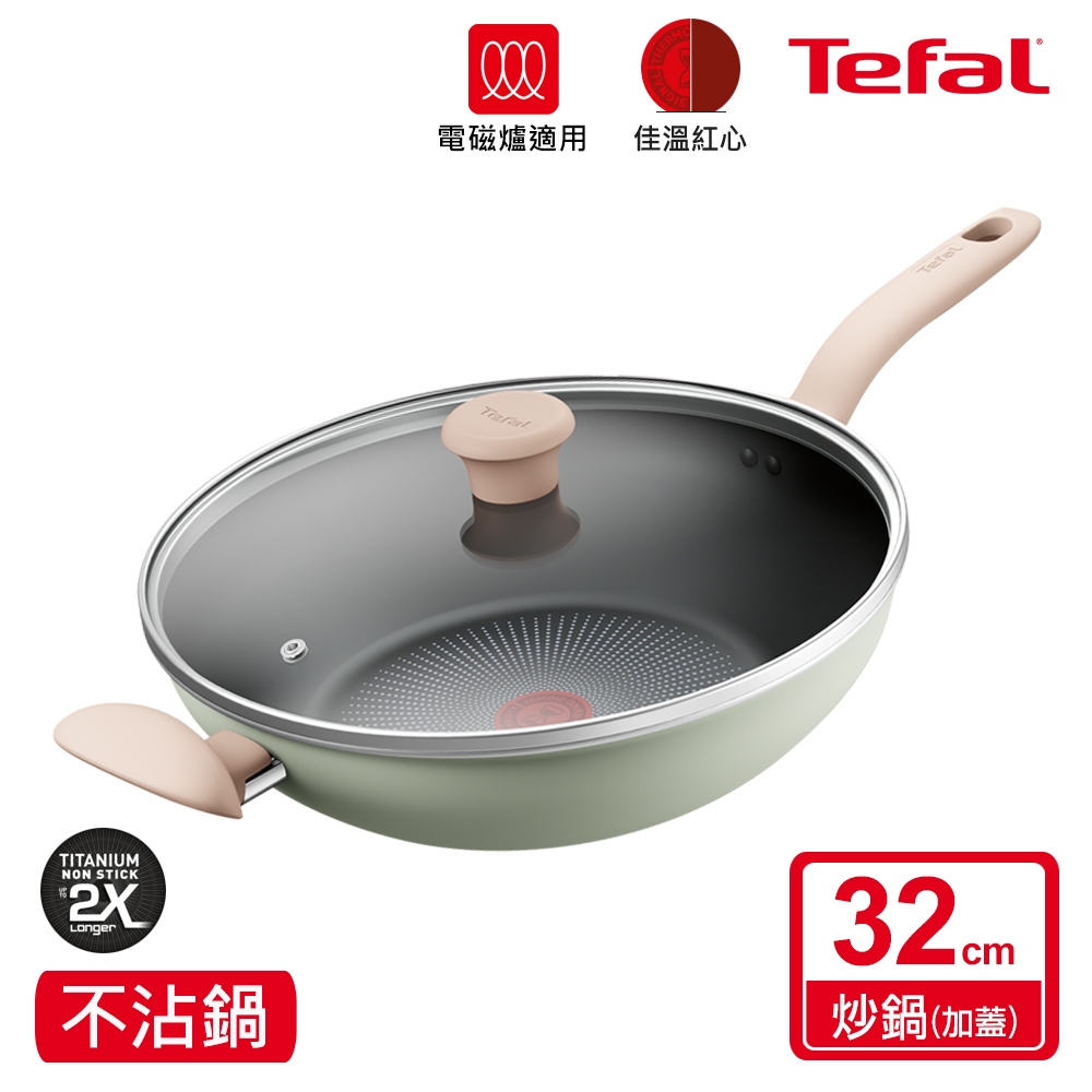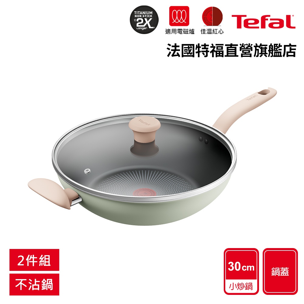 Tefal法國特福 抹茶時光系列不沾炒鍋-加蓋(2倍耐用塗層)(30/32cm)|IH適用 送新手鍋鏟