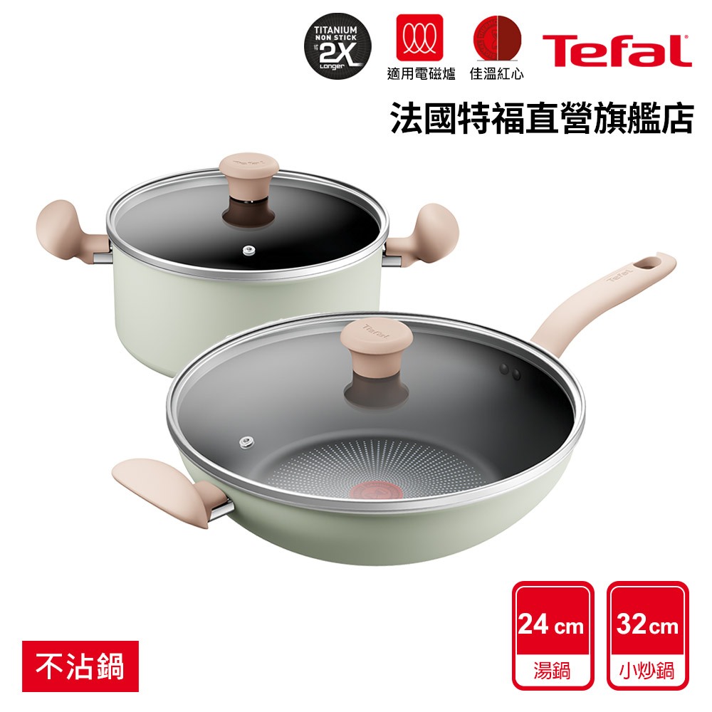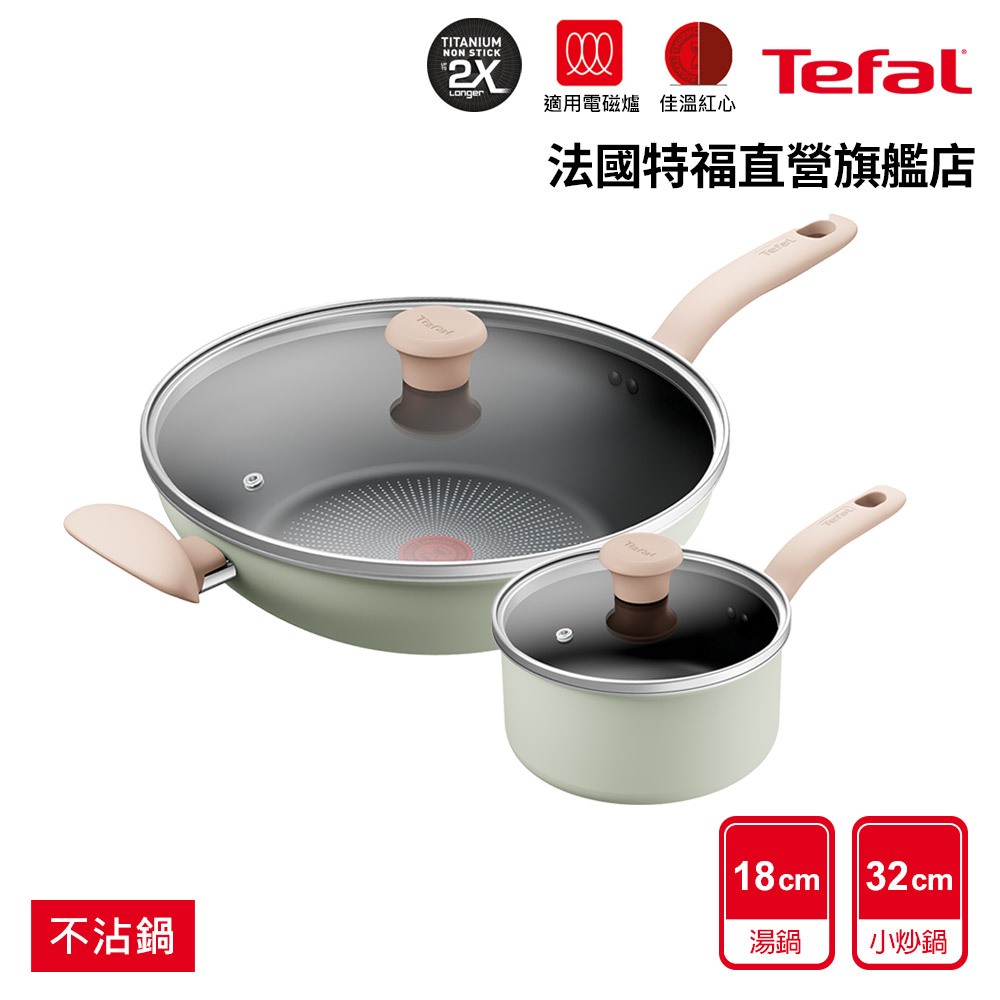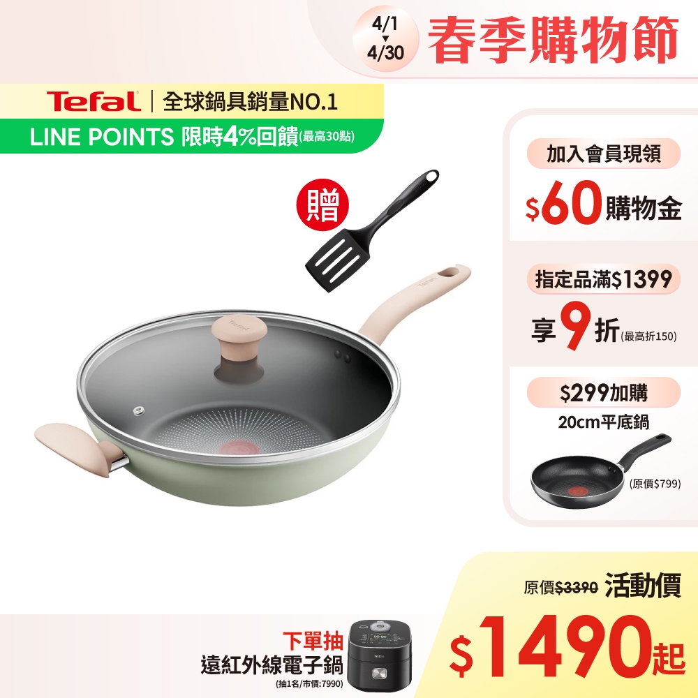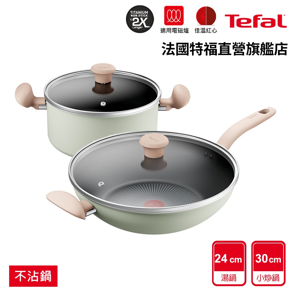 Tefal法國特福 抹茶時光系列不沾炒鍋-加蓋(2倍耐用塗層)(30/32cm)|IH適用 送新手鍋鏟