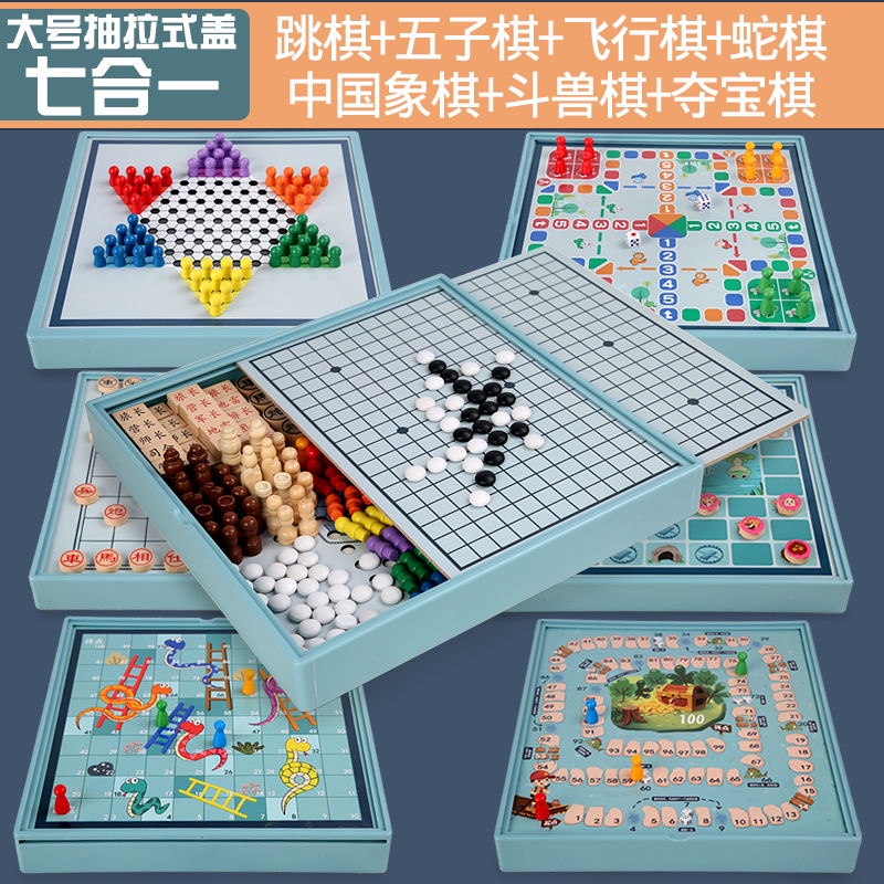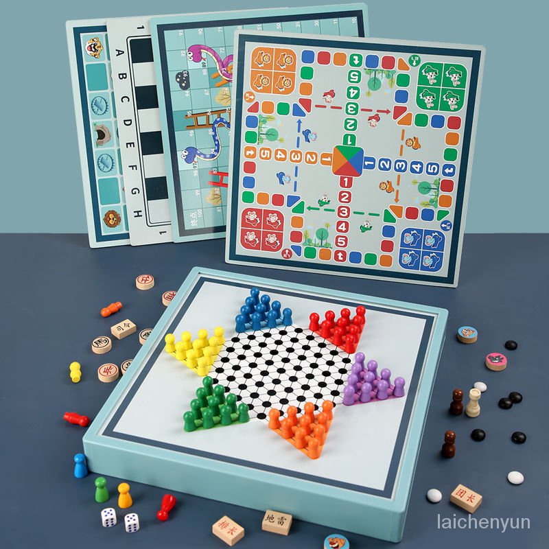 優選好物 兒童玩具飛行棋五子棋跳棋軍旗象棋蛇棋桌面類遊戲大全智力類玩具 CDUn