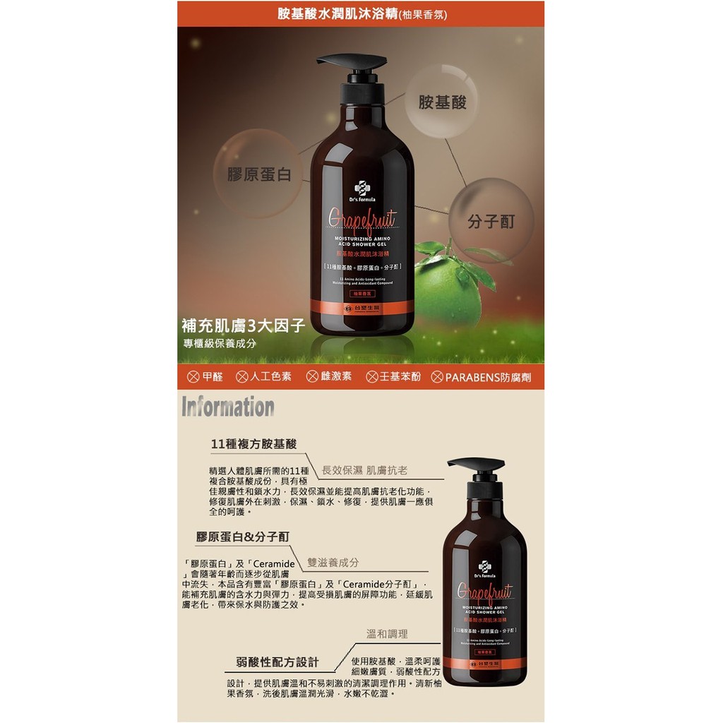 台塑生醫Dr’s Formula 胺基酸沐浴3入促銷組(800gx3入)(共4款)