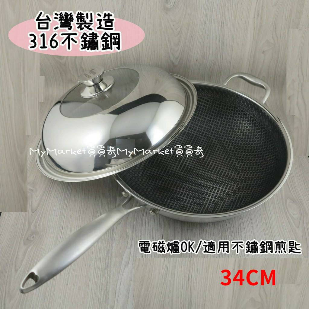 💖台灣製💖炒鍋 深炒鍋 不沾炒鍋 中華炒鍋 316不鏽鋼炒鍋 陶晶 32/34/36/40CM 蜂巢炒鍋 無鉚釘 瑪露塔