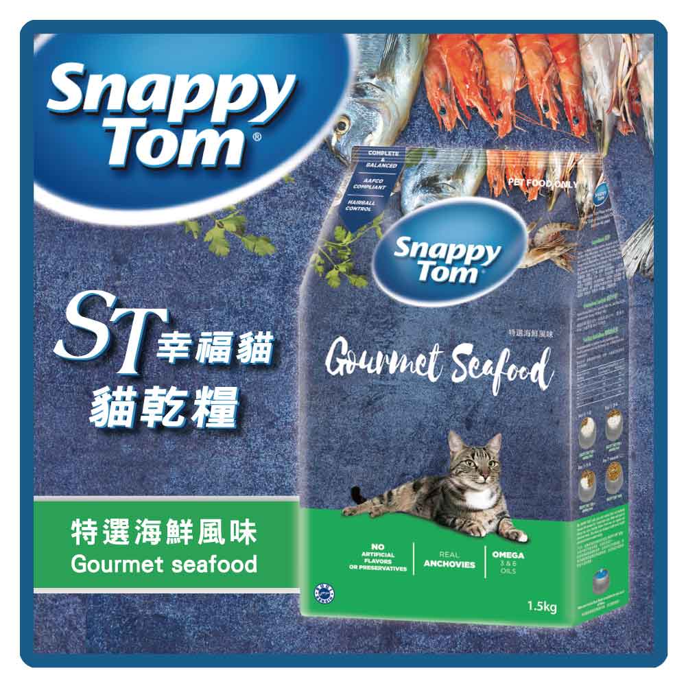 Snappy Tom 幸福貓 貓乾糧 1.5kg (6款) 貓飼料 添加小魚乾 化毛 挑嘴貓