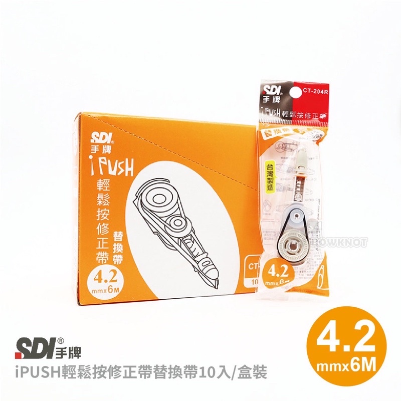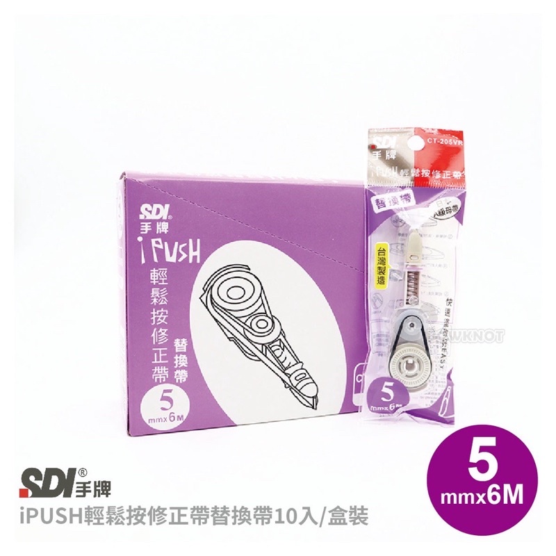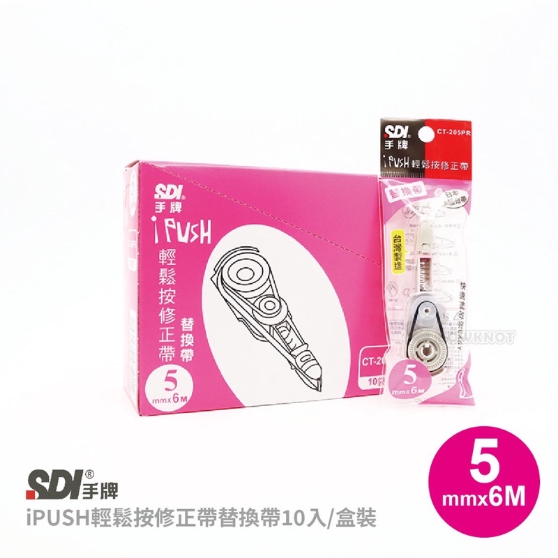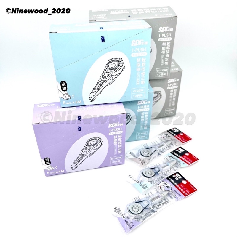【九木文具社】SDI 手牌 i-PUSH 輕鬆按修正帶 內帶 CT-225R 滾輪替換帶5mm x 6M淡彩色10入盒裝