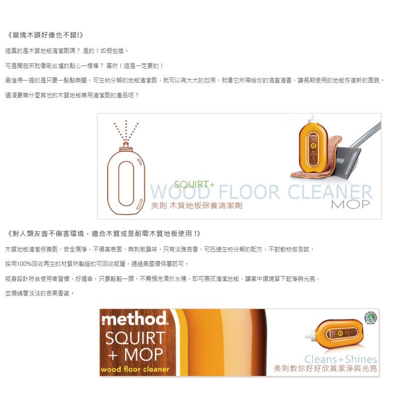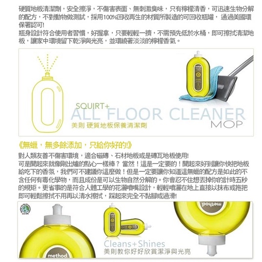 method 美則 地板清潔劑 739ml 各式地板 / 木質地板 / 硬質地板
