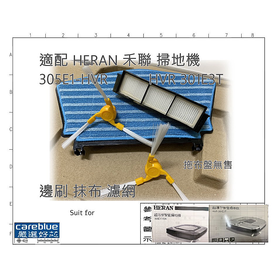 副廠 現貨 耗材 套裝 適配 HERAN 禾聯 掃地機 305E1-HVR HVR-301E3T 邊刷 抹布 濾網