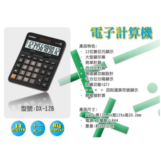 CASIO卡西歐 12位數大字幕商用計算機 DX-12B 大洋國際電子