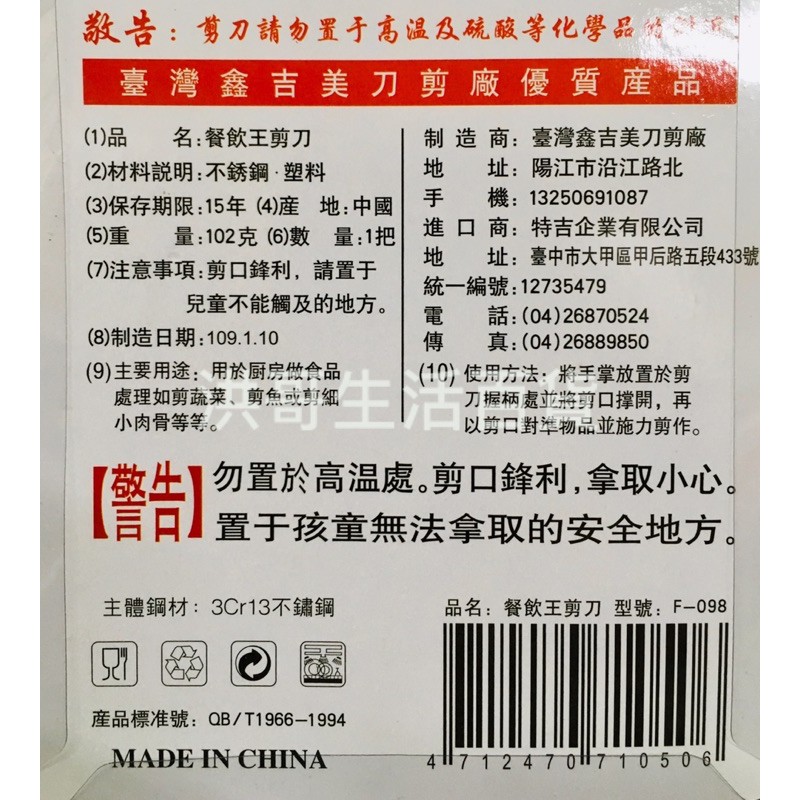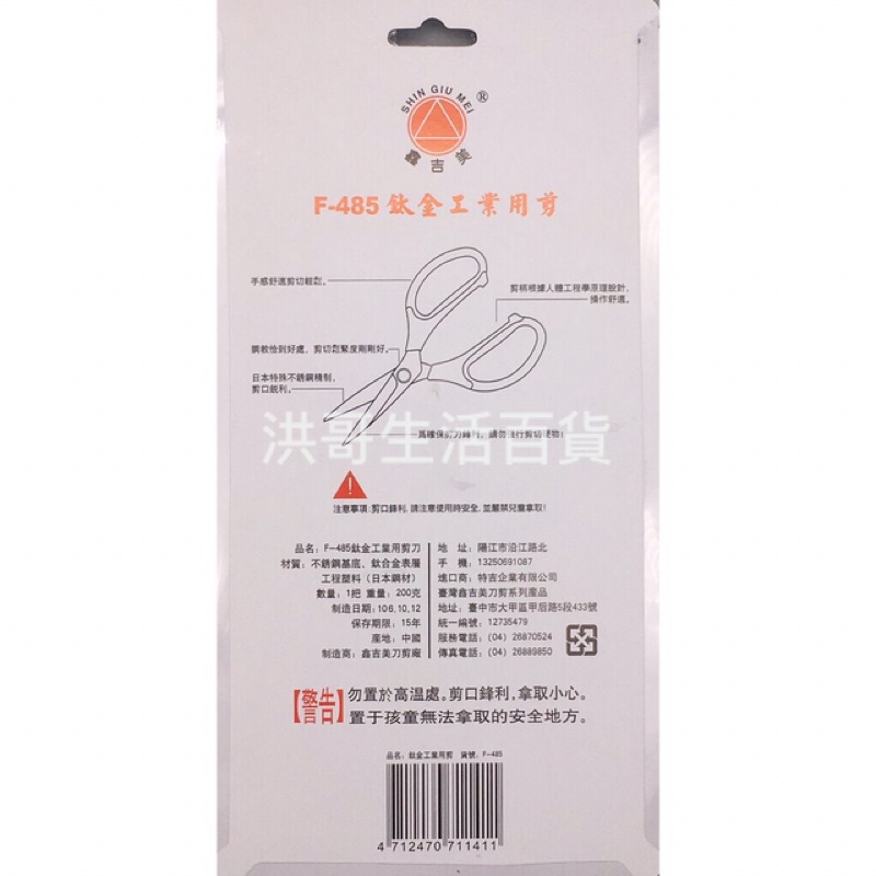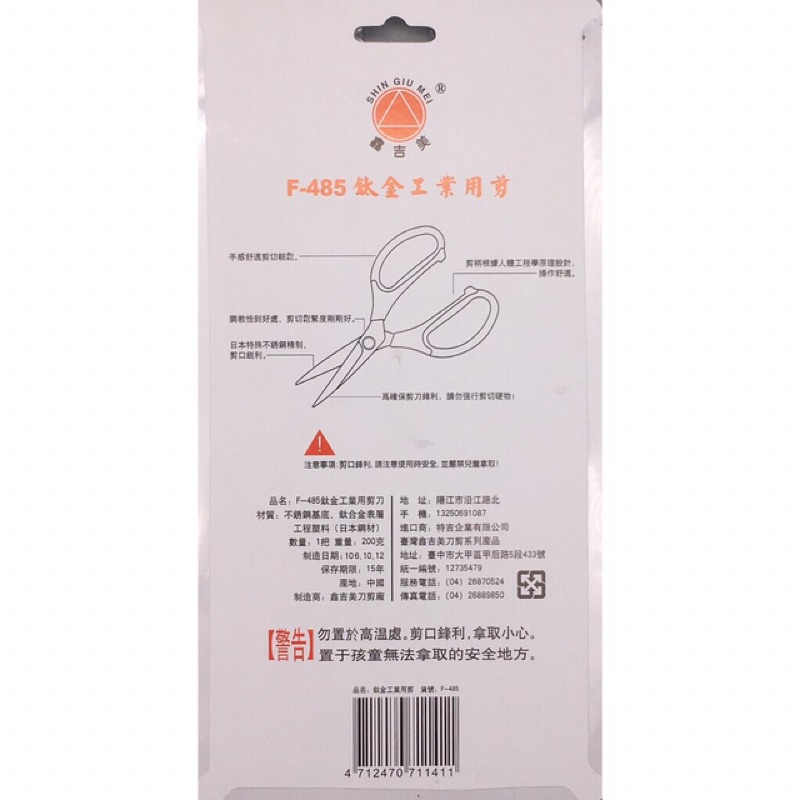鑫吉美 鈦金工業用剪刀 F-485 F-486 鈦剪刀 廚房剪刀 餐飲剪刀 萬能剪刀 裁縫剪刀 不銹鋼剪刀