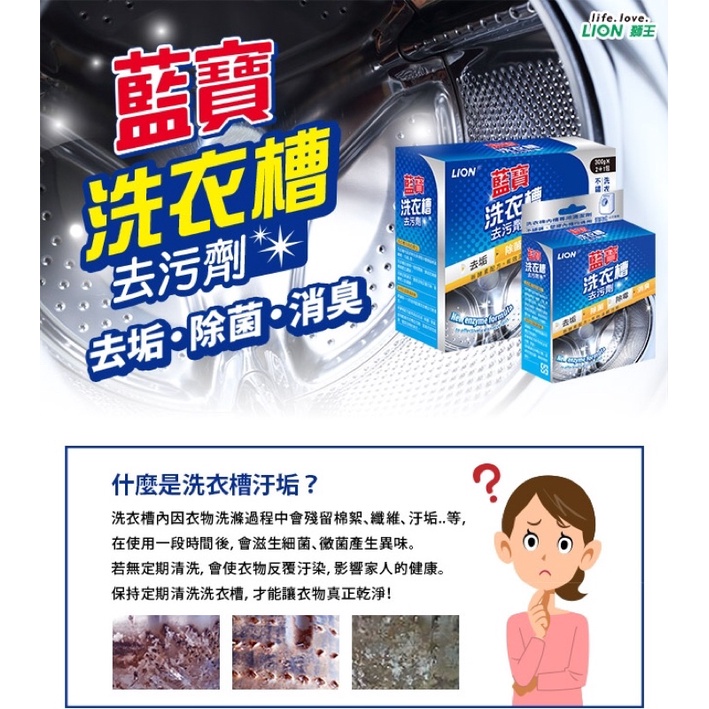 【現貨】 新版 日本 LION獅王 藍寶洗衣槽去汙劑300g /2+1組 去垢 除菌 除霉 消臭 [629004]