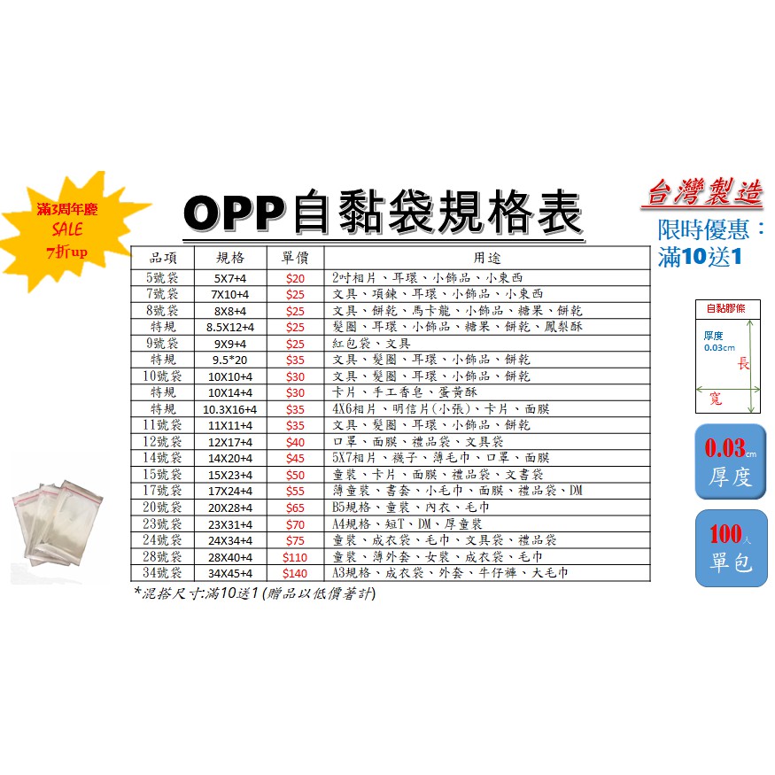 OPP自黏袋 【台灣現貨、快速到貨、滿10送1】JOE@全館7折起『OPP自黏袋多尺寸賣場』包袋透明袋#服飾袋#飾品袋