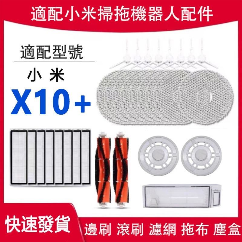 適配 小米X10+耗材X10 Plus 掃地機器人配件 耗材 主刷 拖布 邊刷 集塵袋 濾網 拖布支架 主刷蓋板 清潔劑