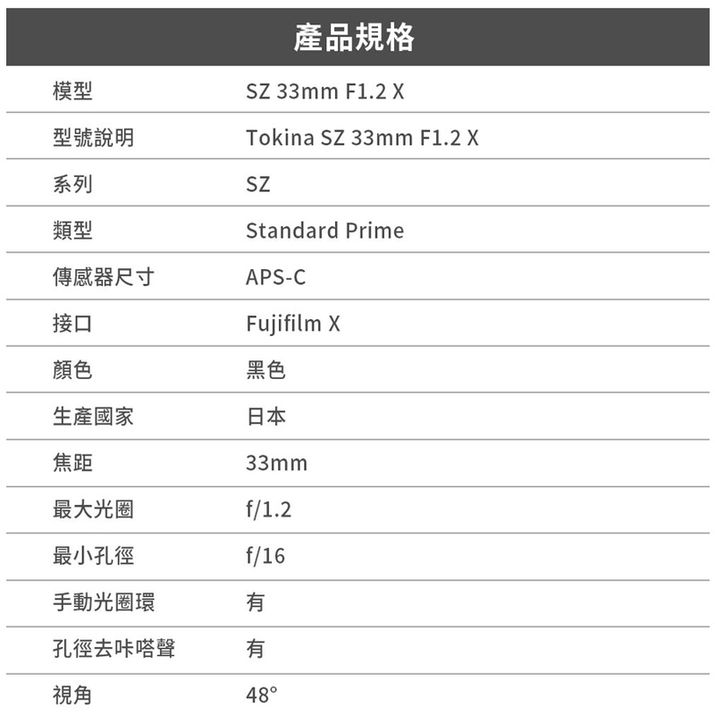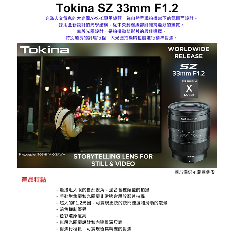 Tokina SZ 33mm F1.2 X APS-C鏡頭 公司貨 FOR FUJIFILM X 富士