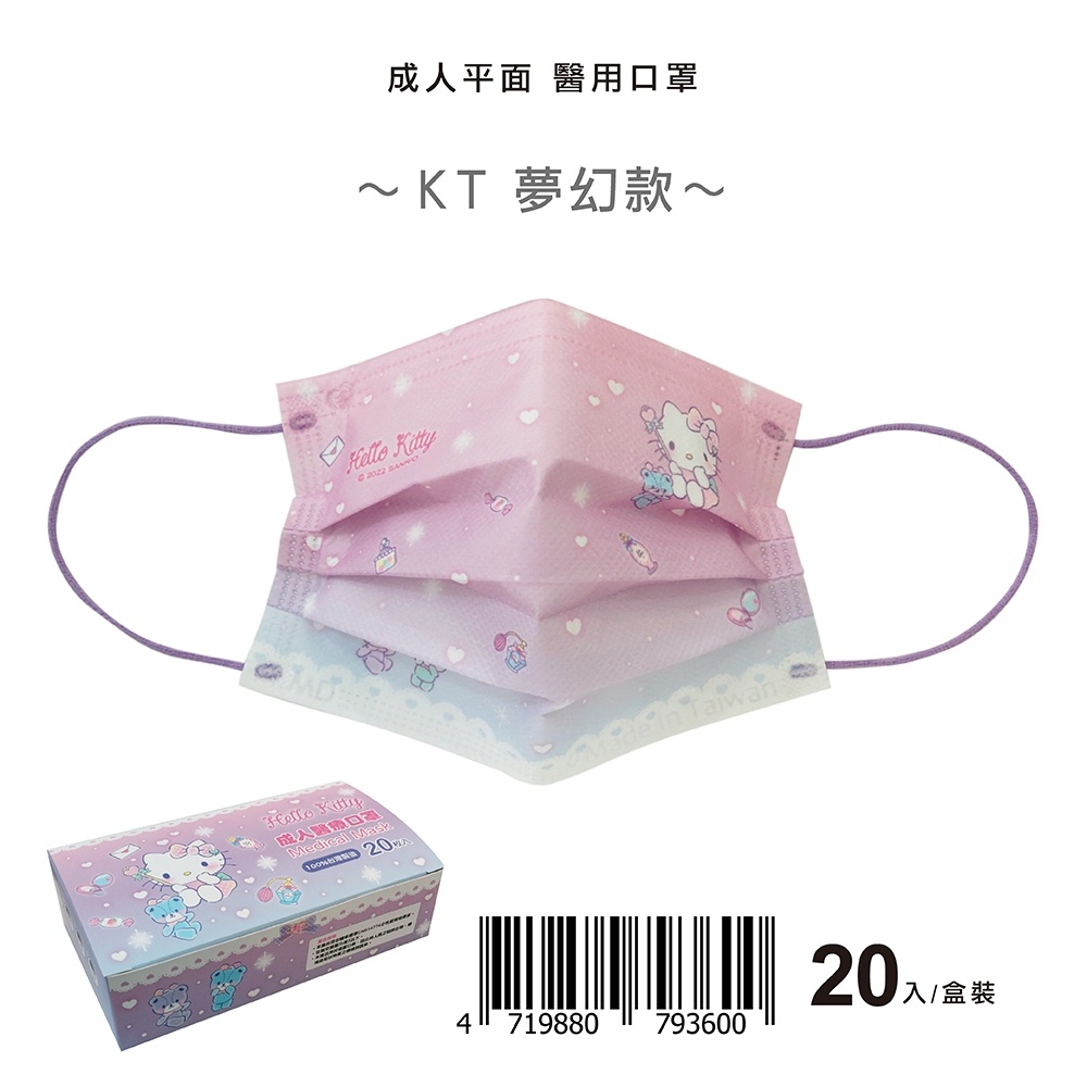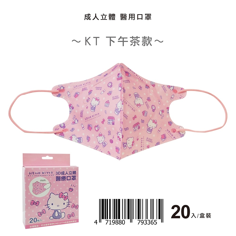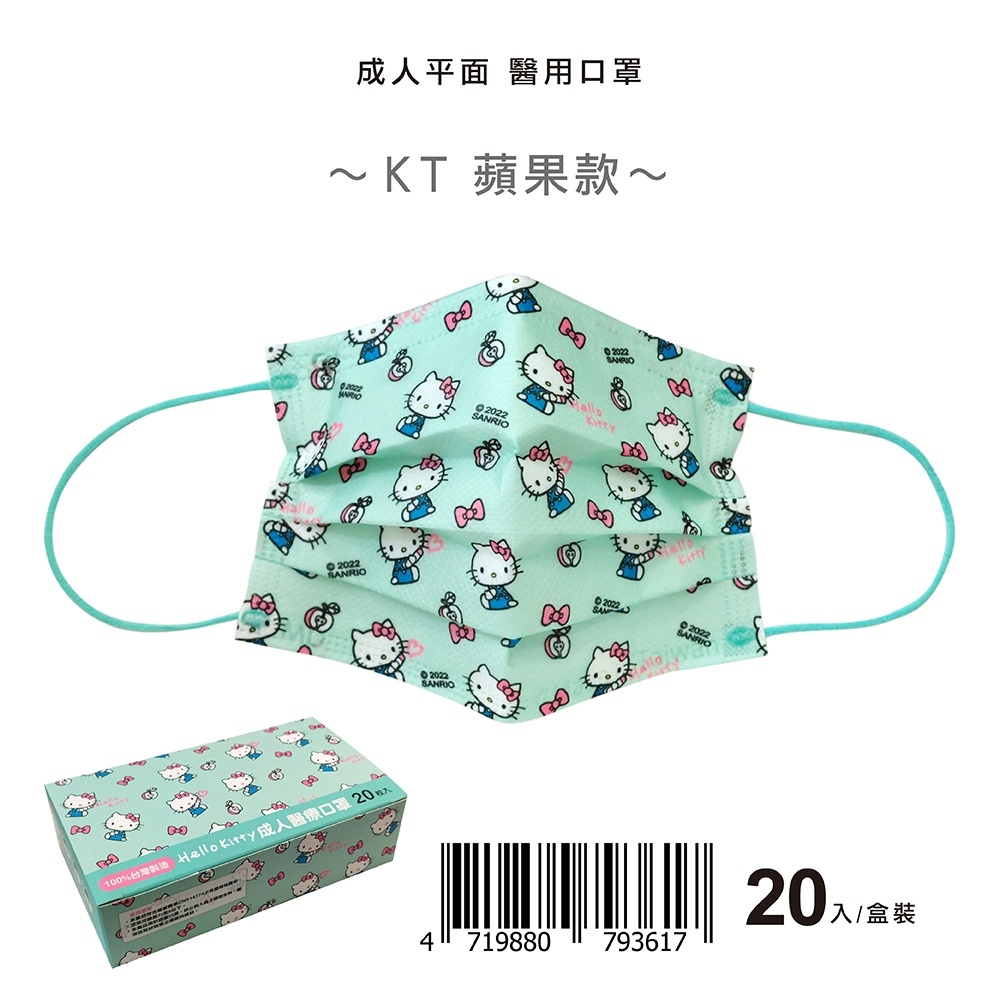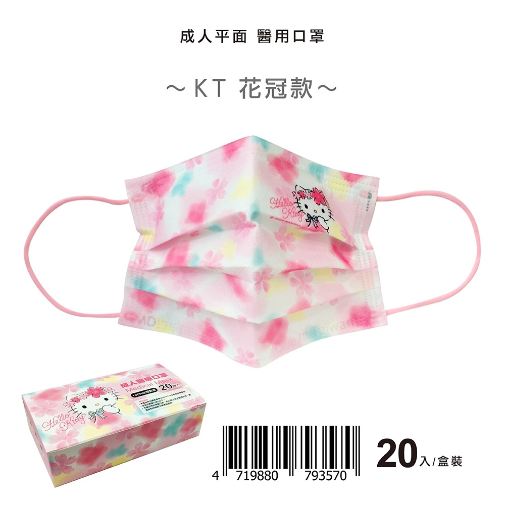 【盛籐】HELLO KITTY 成人醫用口罩 20片/盒 春天藥局