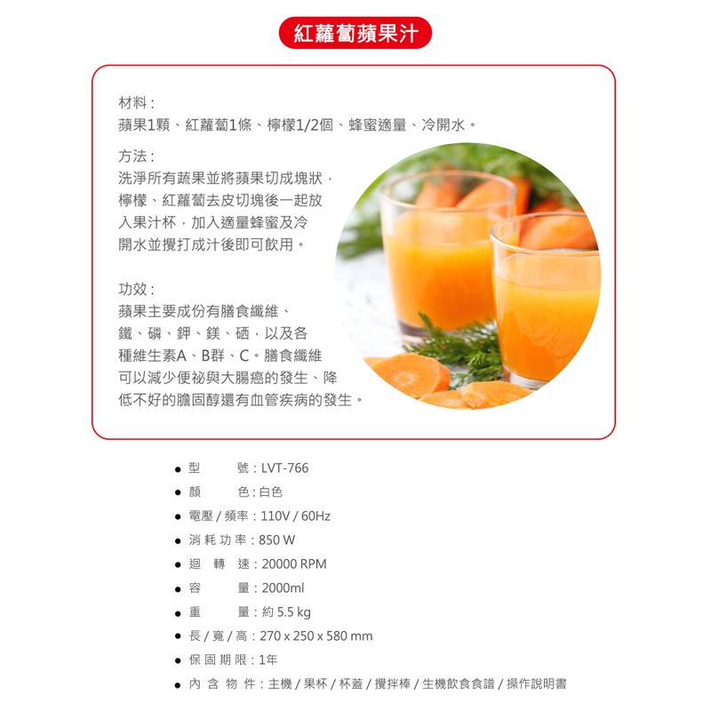【貴夫人】生機博士 全營養調理果汁機 (LVT-766)