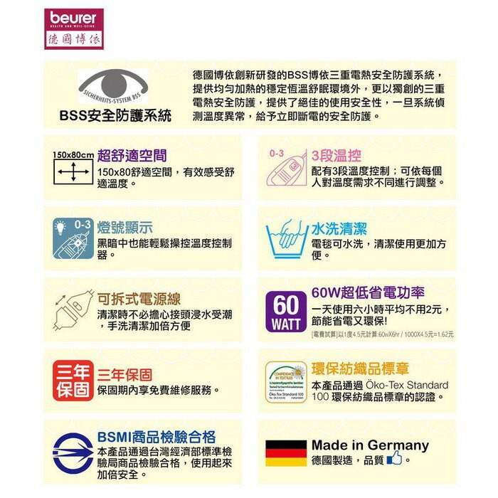 【現貨】德國博依beurer電熱毯-單人電毯TS23(長效型)TS 23 熱電毯 電毯 熱敷電毯 保暖墊 復健熱敷
