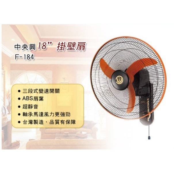 『現貨供應 含稅 』免運 中央興 F-184 18吋 掛壁扇 掛扇 吊扇 電風扇 涼風扇 風扇 台灣製