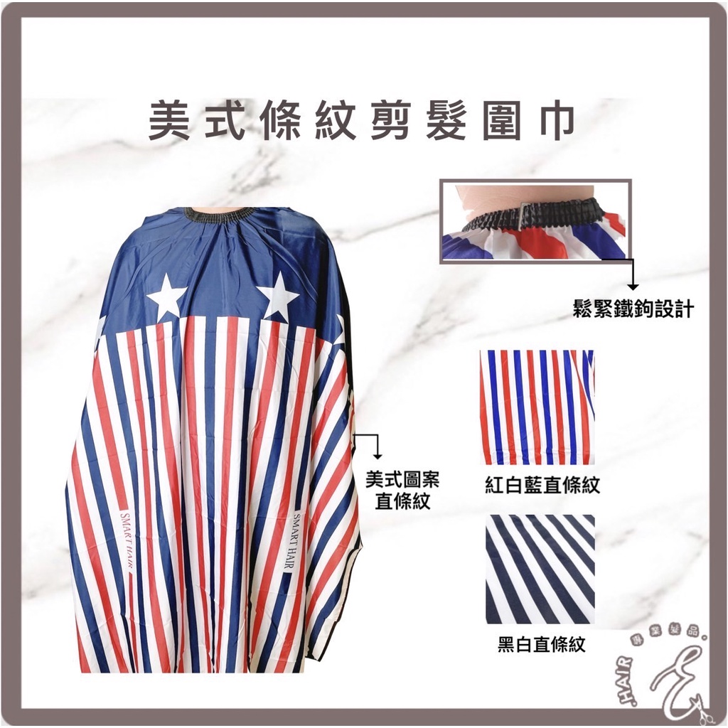 復古美式 BARBER 剪髮圍巾 男士剪髮 鬆緊勾式剪髮圍巾 美髮圍巾 理髮圍布 條紋剪髮圍巾 燙染圍巾