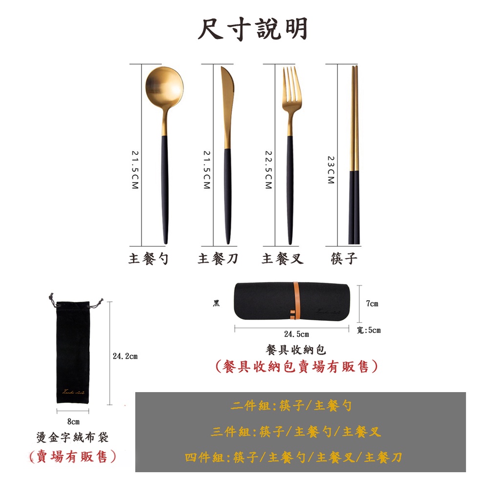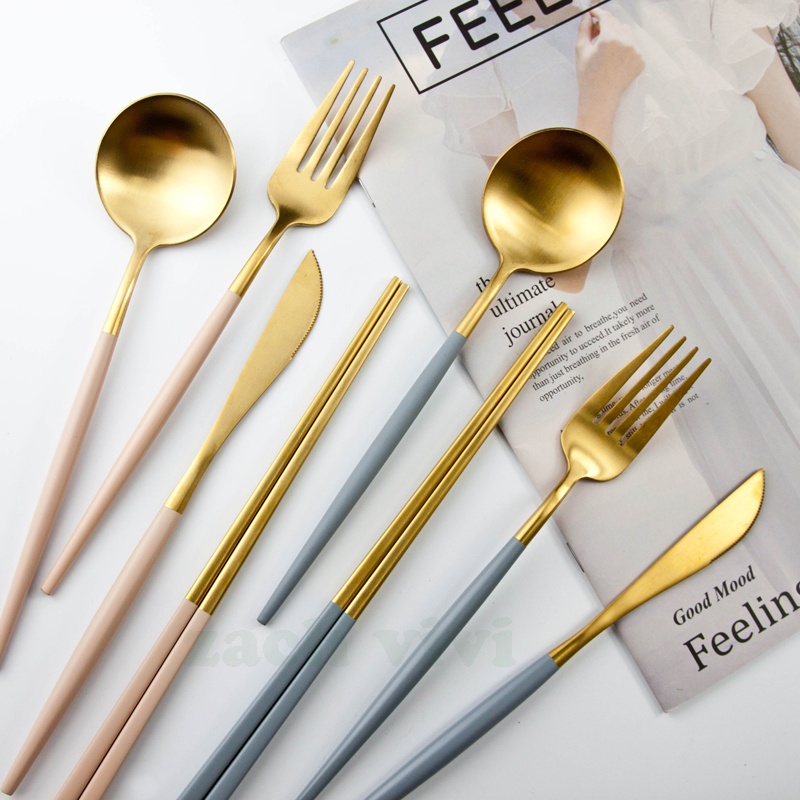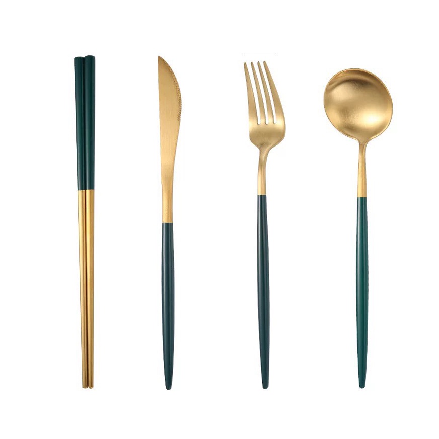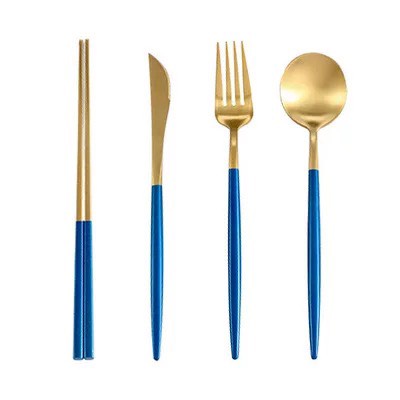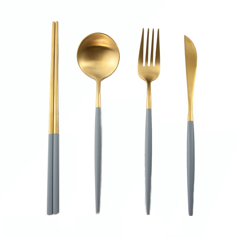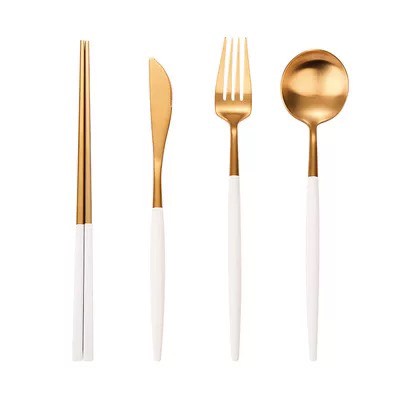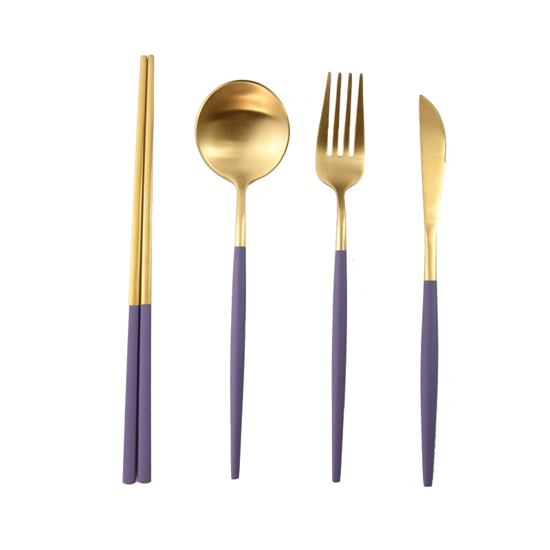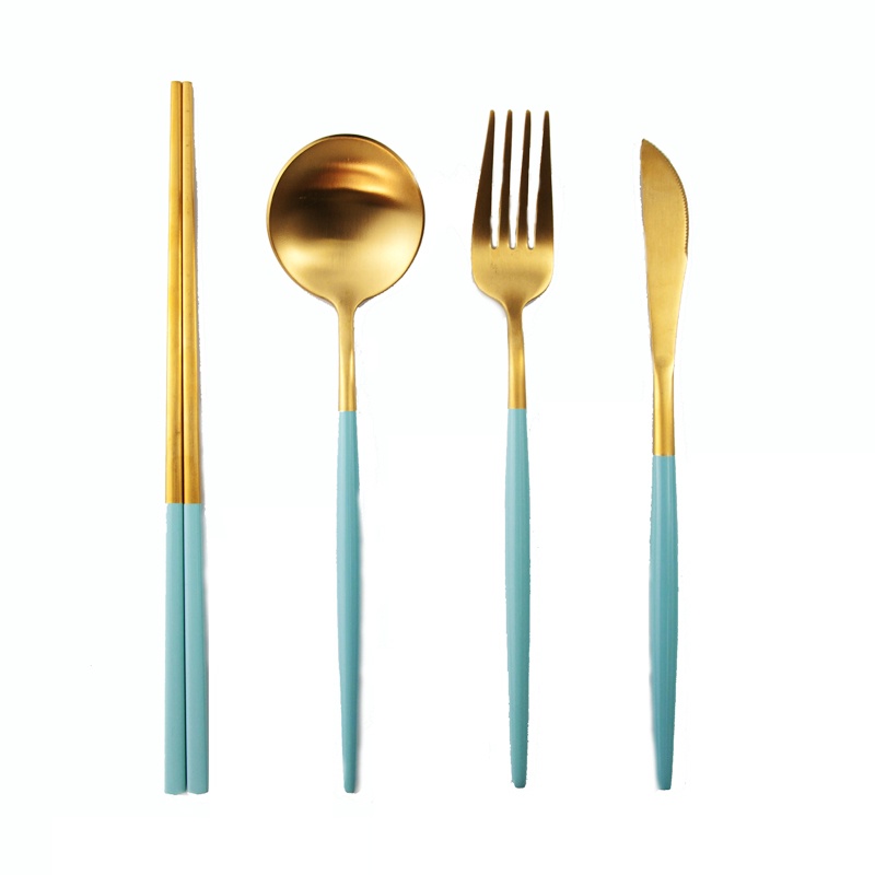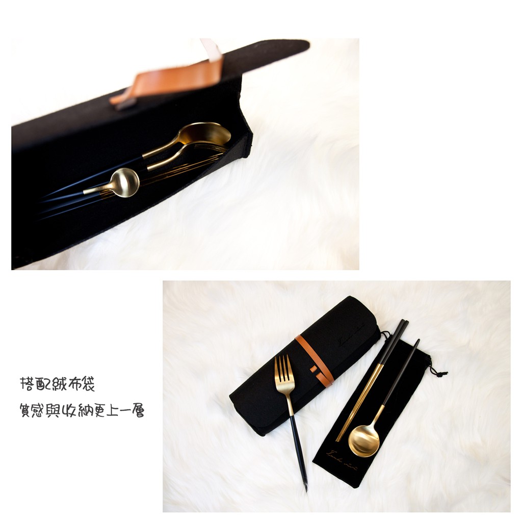 【加厚款四件組】北歐 葡萄牙 304不鏽鋼 餐具 湯匙 筷子 刀叉 金色 玫瑰金 奶茶色 環保 叉子 環保餐具 旅行餐具