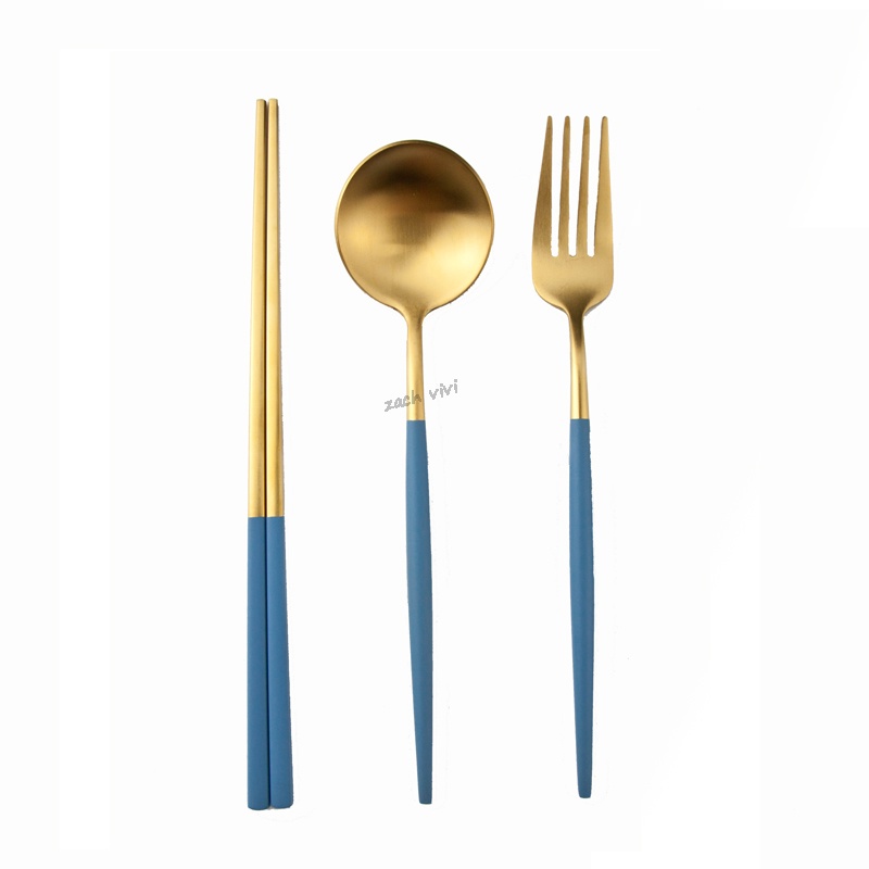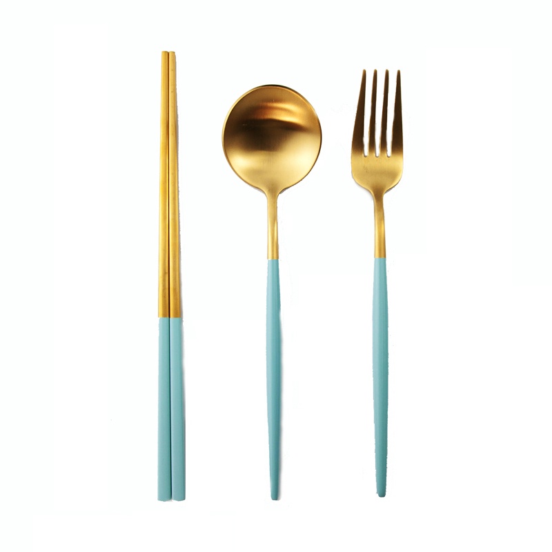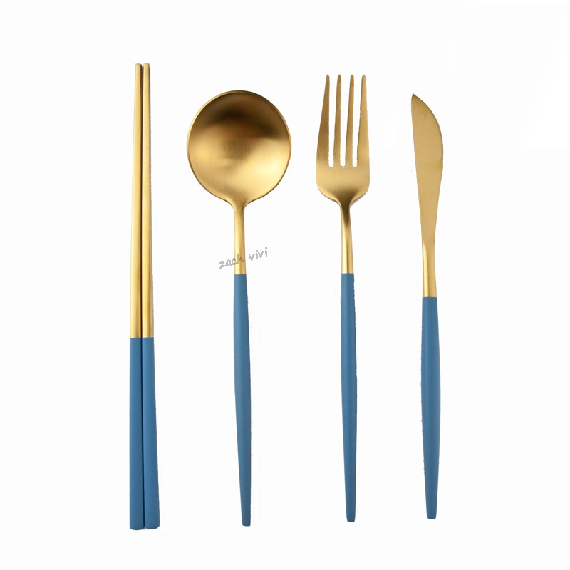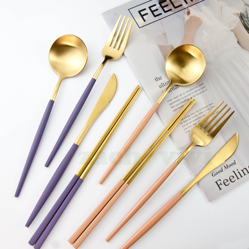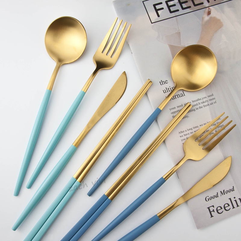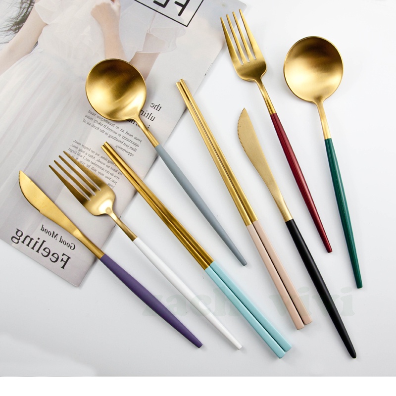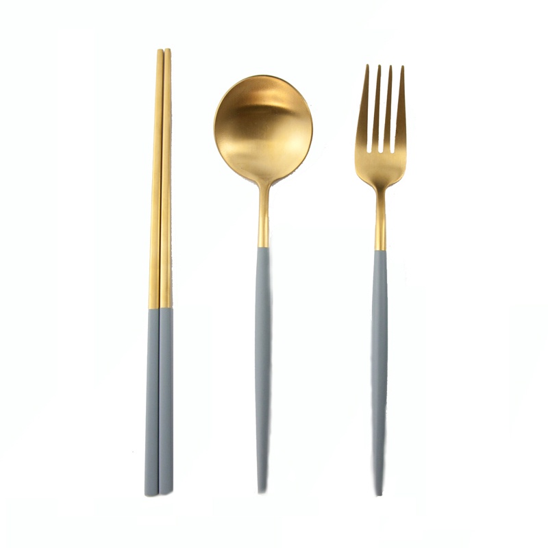 【加厚款四件組】北歐 葡萄牙 304不鏽鋼 餐具 湯匙 筷子 刀叉 金色 玫瑰金 奶茶色 環保 叉子 環保餐具 旅行餐具