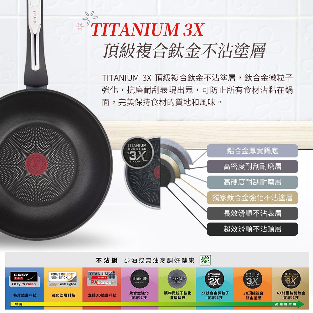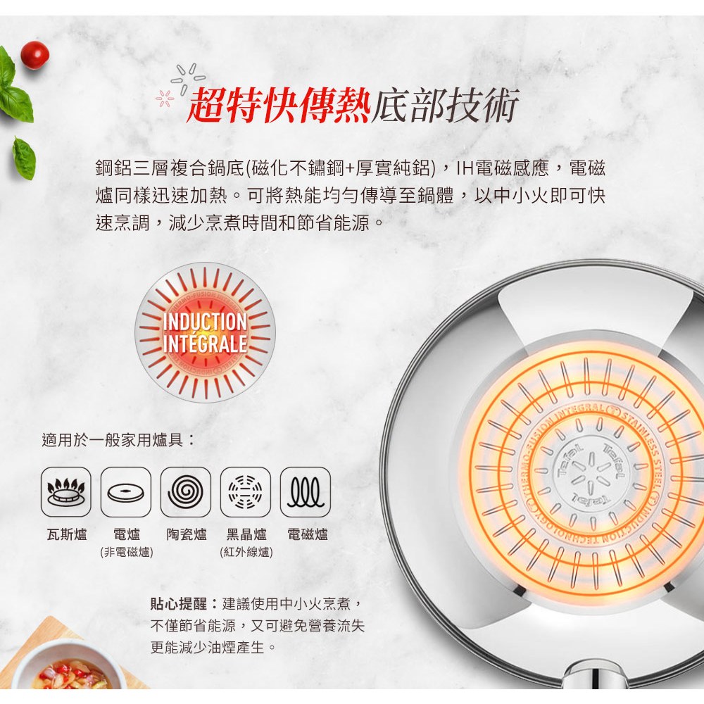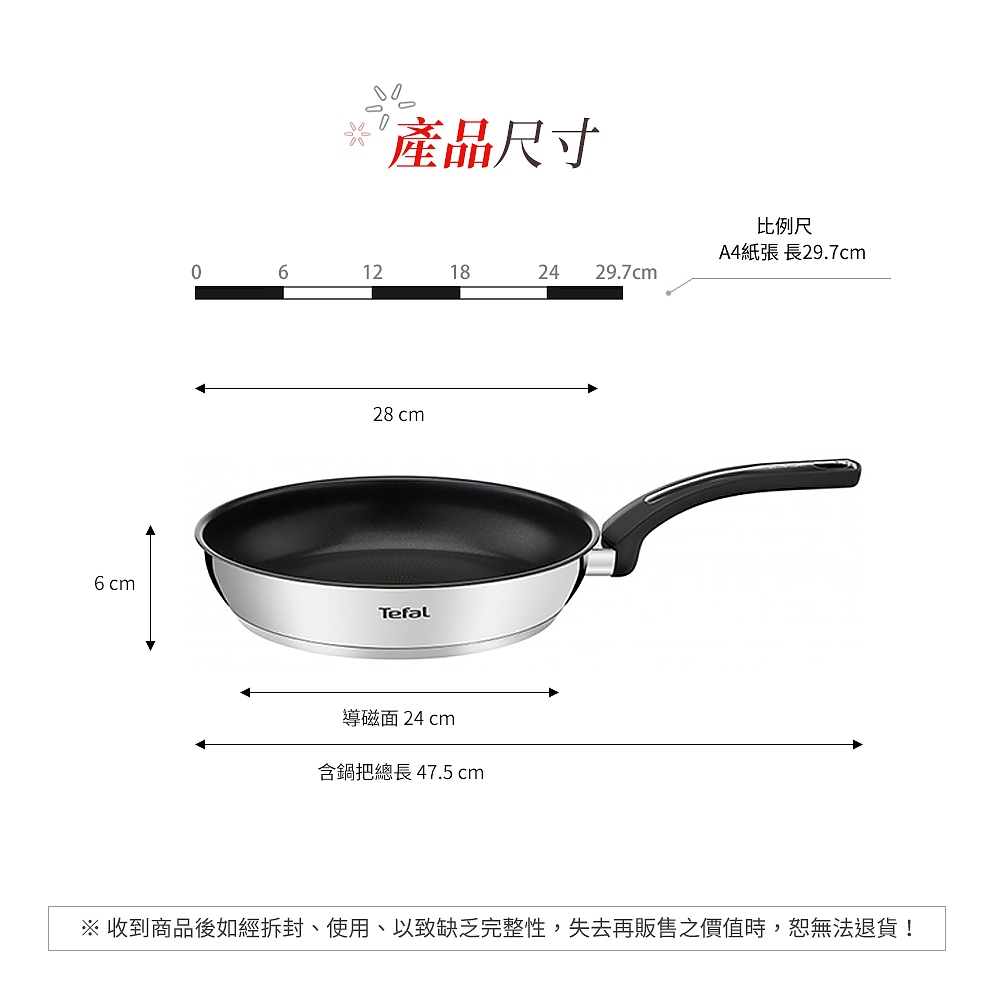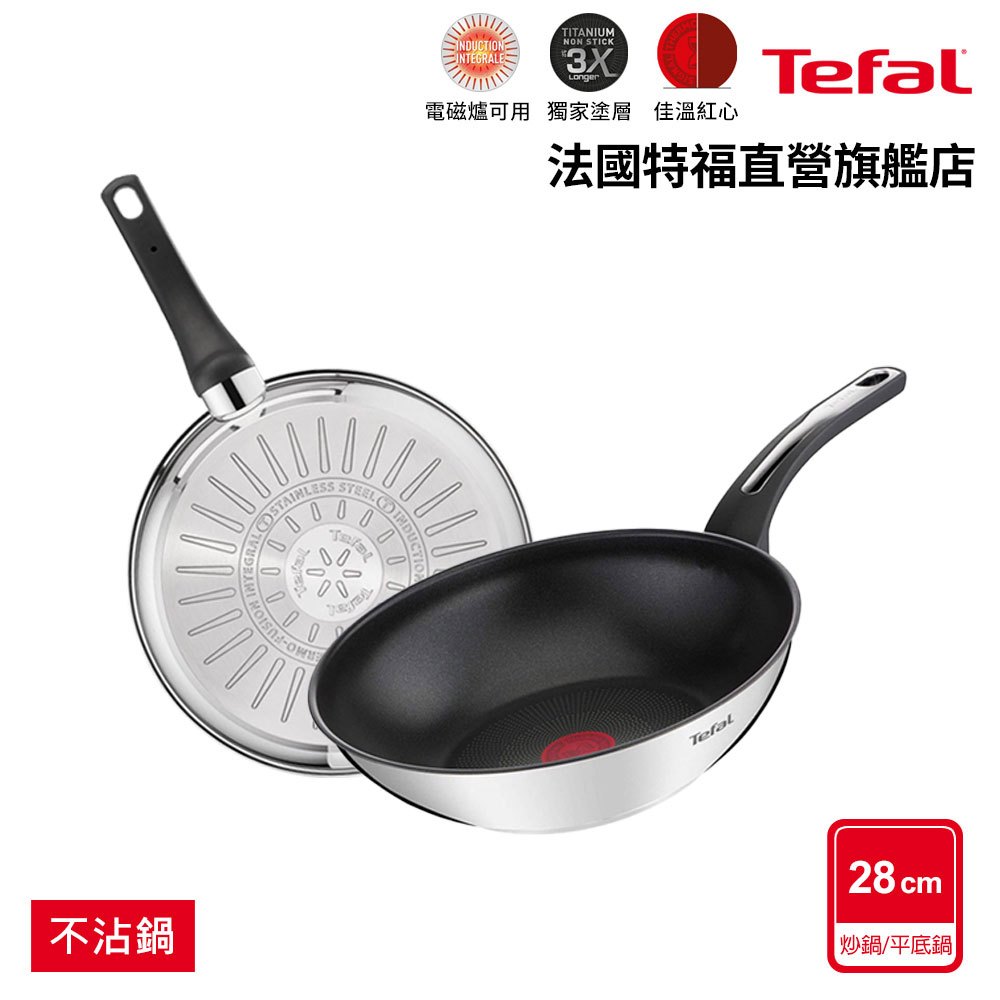 Tefal法國特福 精靈複合不鏽鋼系列28CM不沾平底鍋/炒鍋(3倍耐用塗層)(電磁爐適用)
