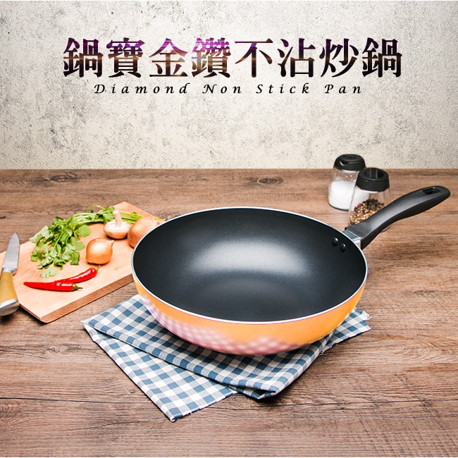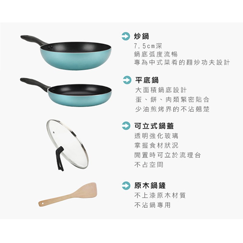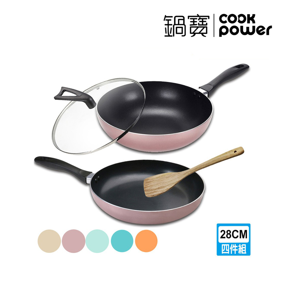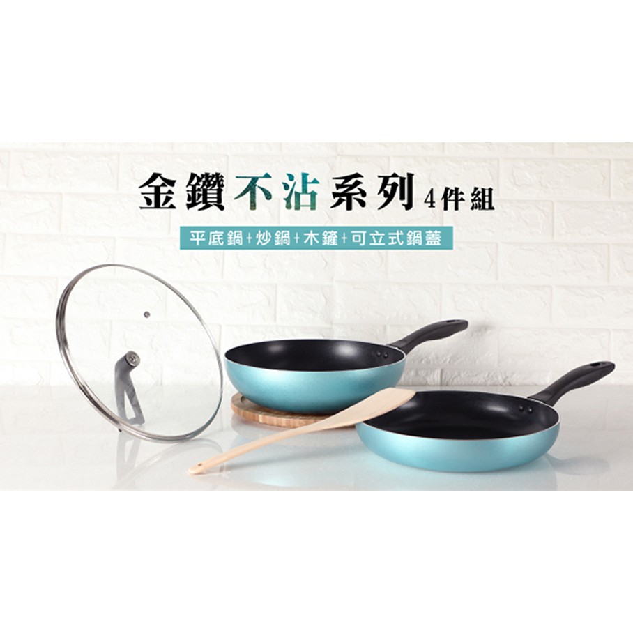 鍋寶 金鑽不沾雙鍋超值組(28cm炒鍋+28cm平底鍋+28cm玻璃鍋蓋+木鏟) 五色任選