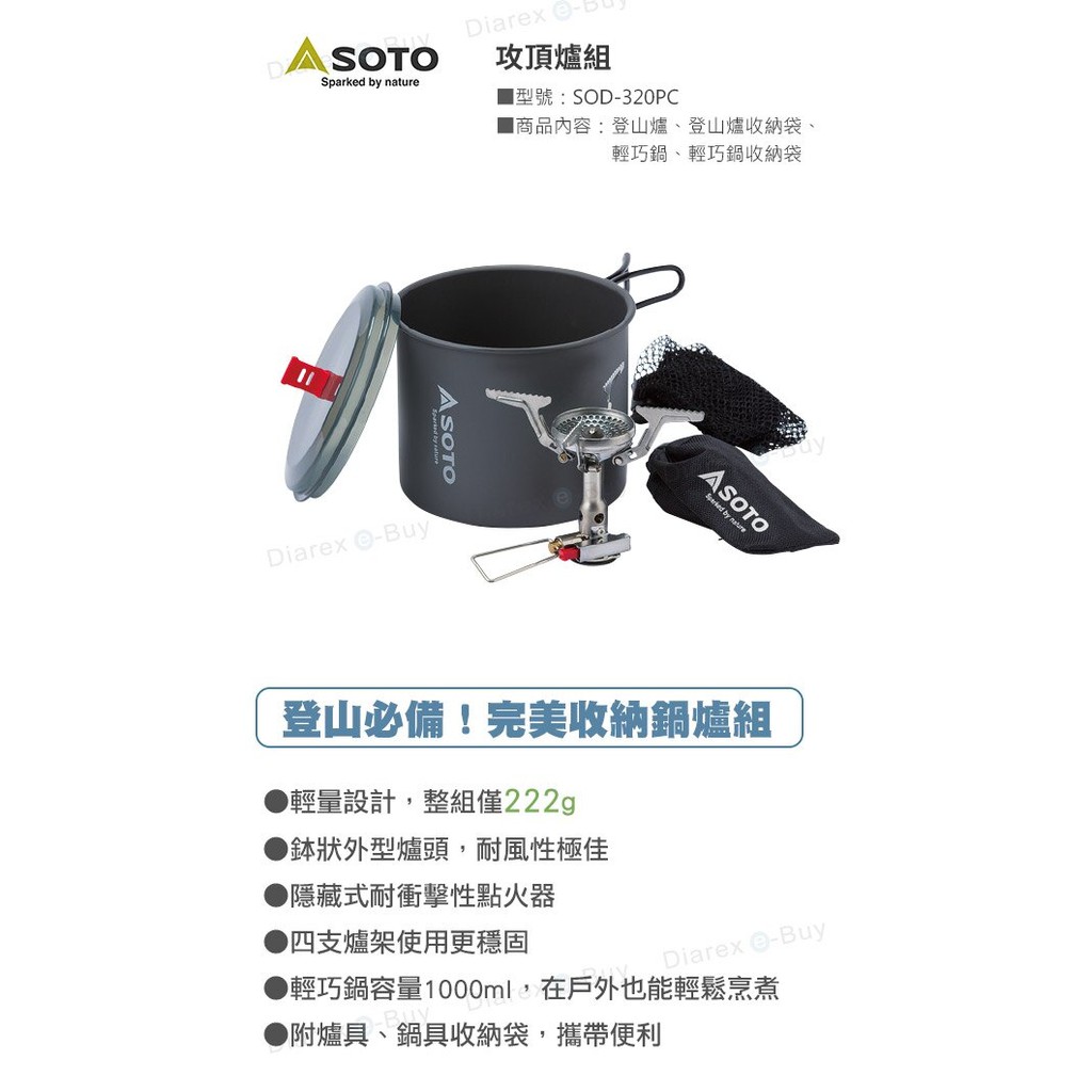SOTO攻頂爐組【SOTO】SOD-320PC 爐組 攻頂爐 蜘蛛爐 登山爐 野炊 野營 露營 愛露愛玩
