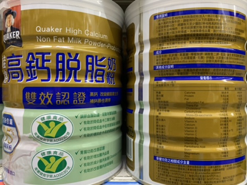 【附發票】- 每瓶特價379元,桂格雙認證高鈣脫脂奶粉750g