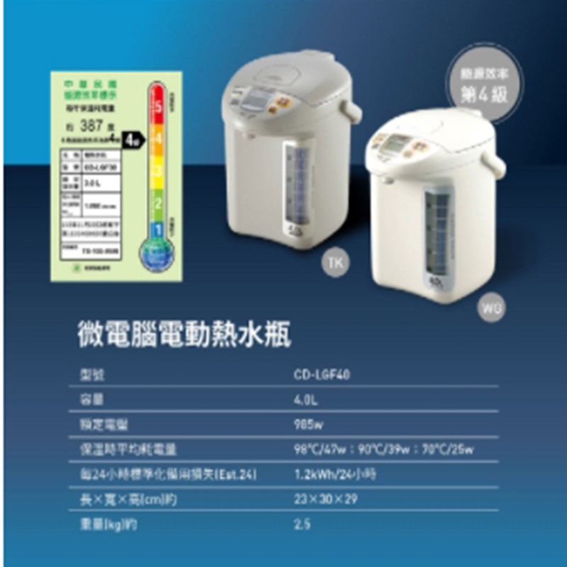象印 4L微電腦電動熱水瓶 CD-LGF40 現貨 廠商直送