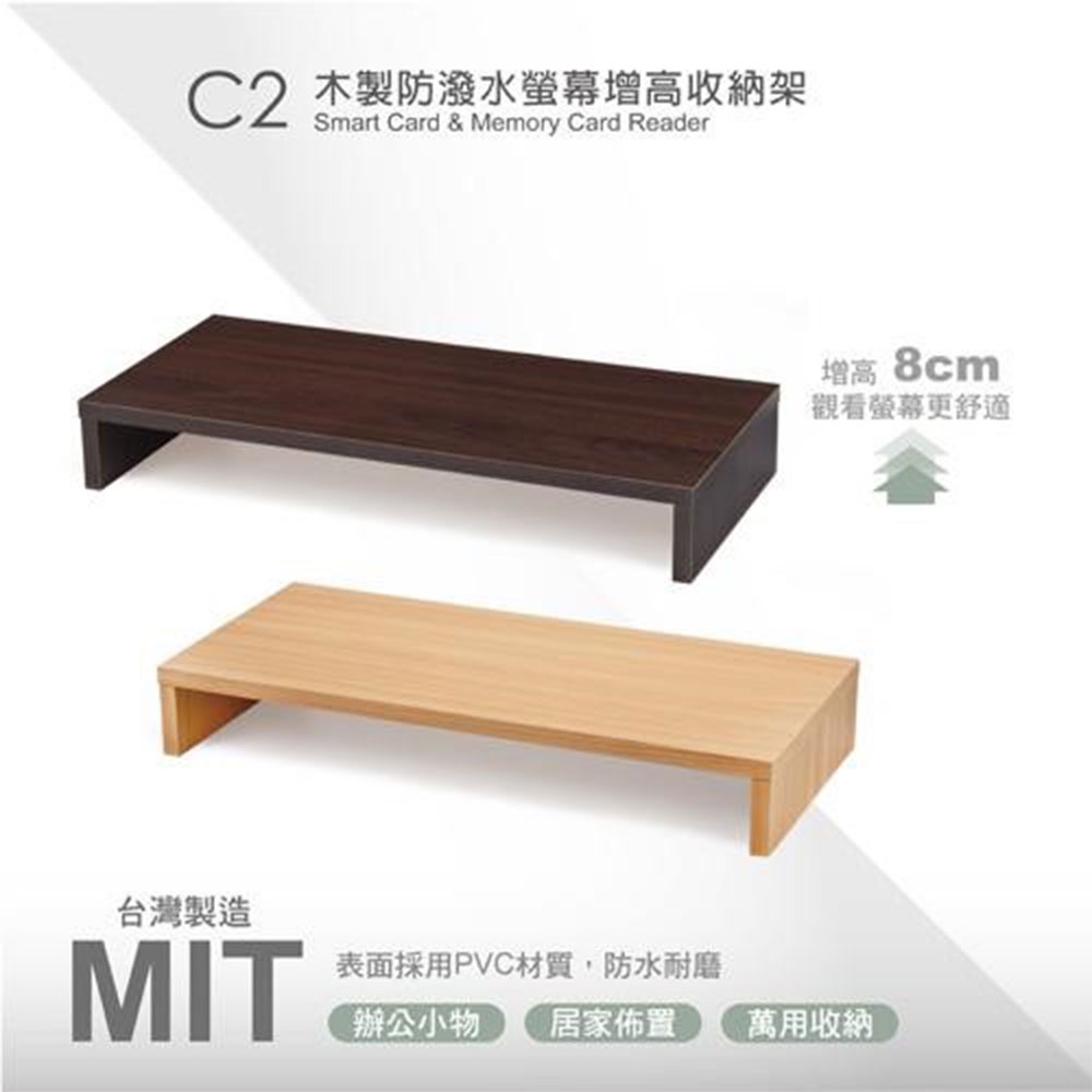 E-Books 木製防潑水螢幕增高架 C2 胡桃色/淺木色 桌面收納 電腦3C周邊 滑鼠鍵盤收納 小物收納|史泰博