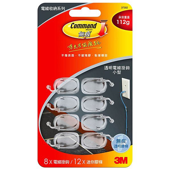 3M 無痕 透明 小型 電線掛鉤 37302 附發票
