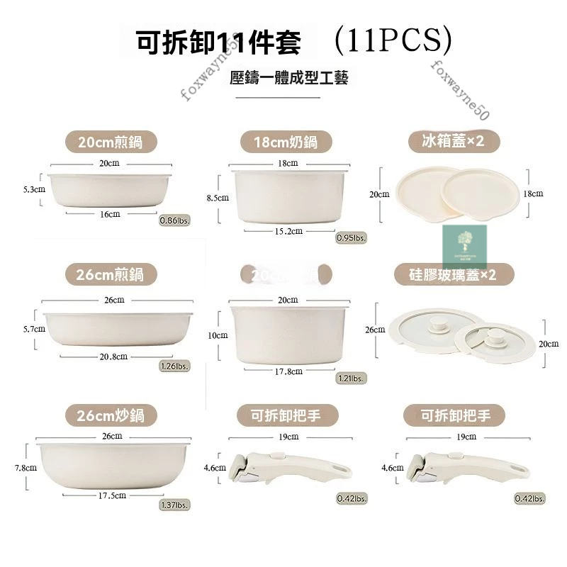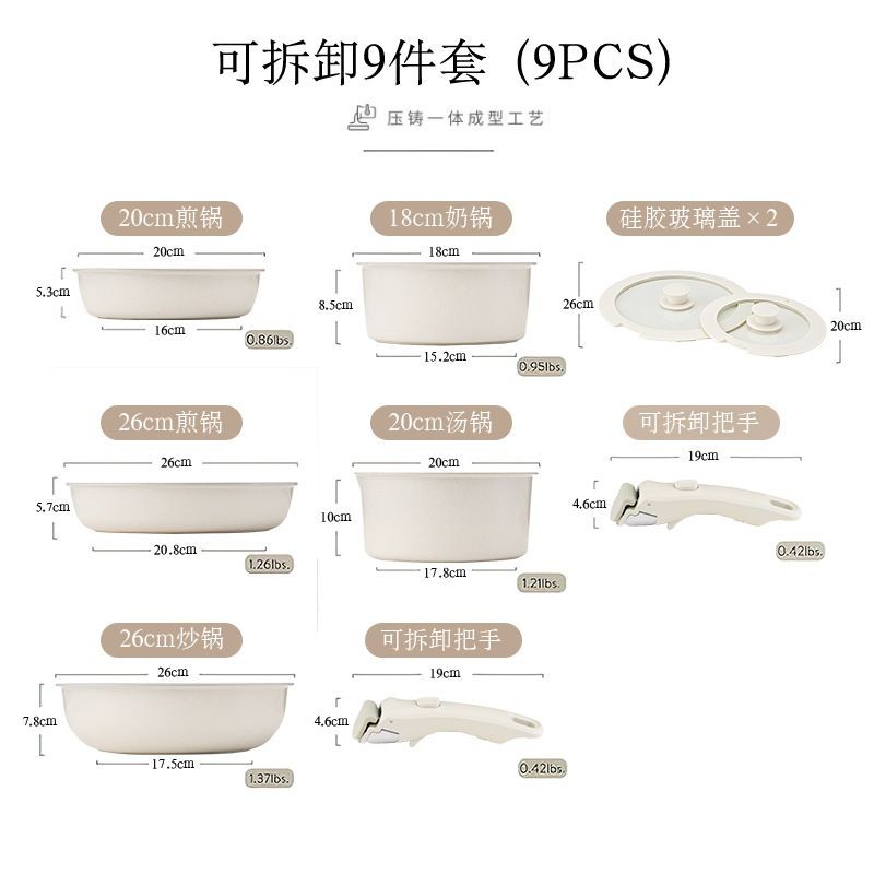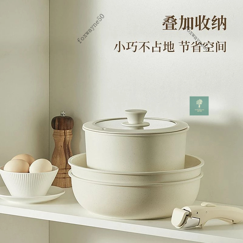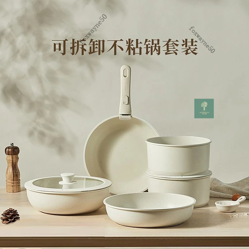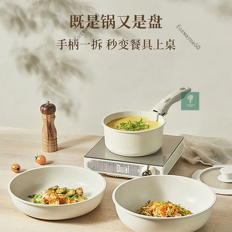 台灣出貨 可拆卸手柄麥飯石不粘鍋鍋具套裝全套平底鍋戶外煎炒鍋卡羅特平底鍋 泡麵鍋 電磁爐/ih爐 麥飯石不粘燉鍋 傢用火