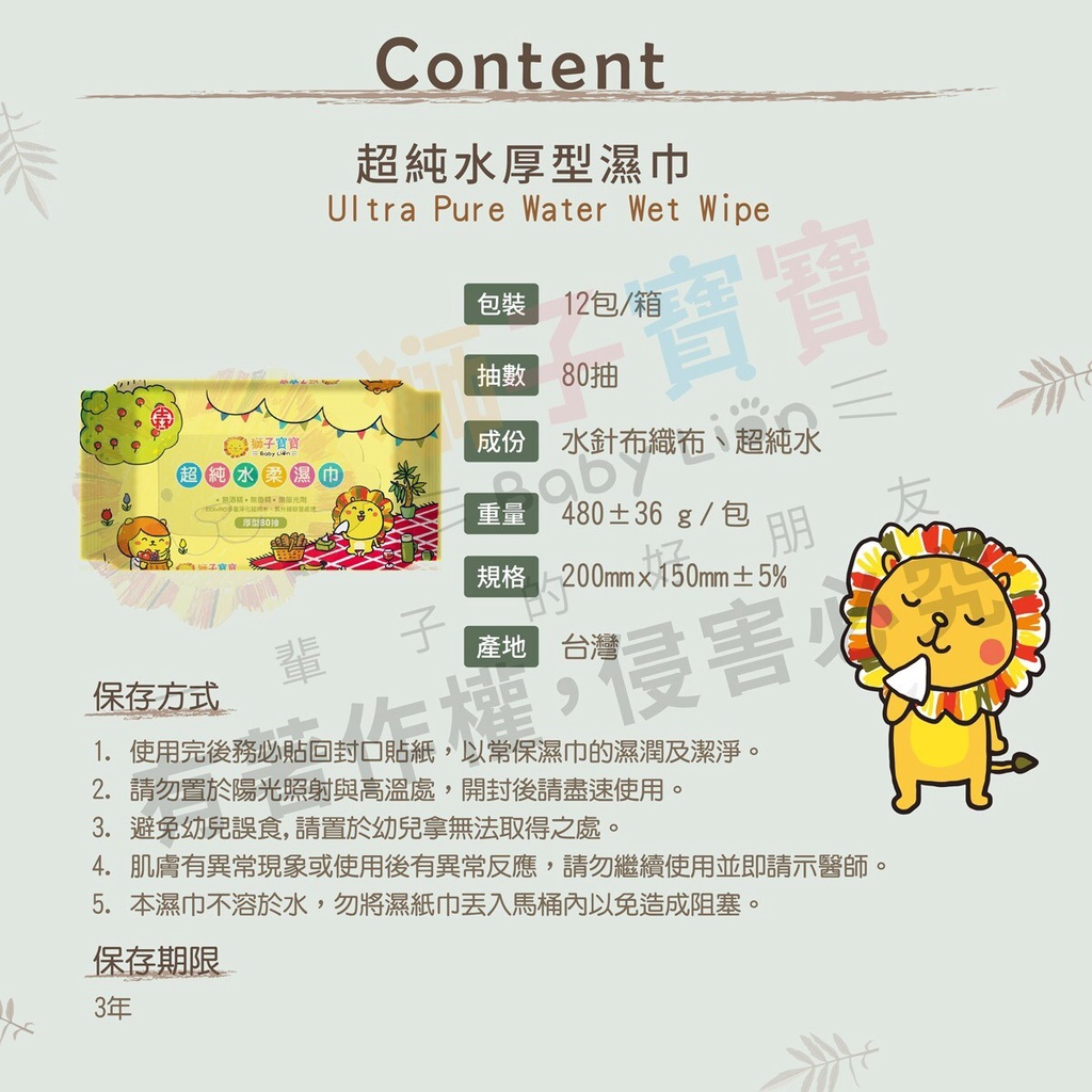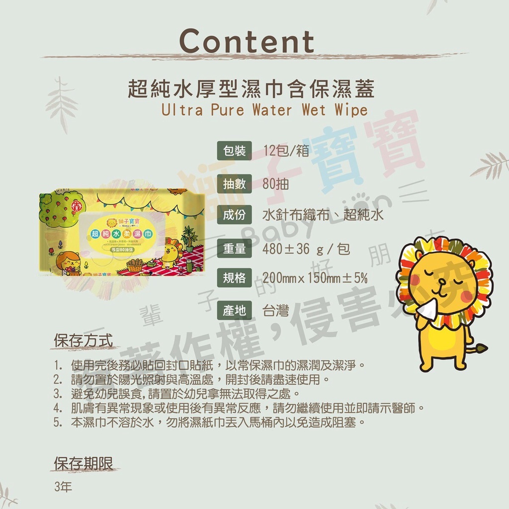 熱銷破萬 獅子寶寶 濕紙巾 超純水厚濕紙巾 / 20抽 /80抽(無蓋)/ 80抽(有蓋)