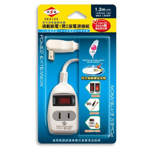 《威電 CK2122》1開2座延長線 電源線組 4尺 / 6尺/ 9尺