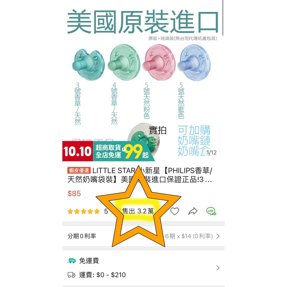 LITTLE STAR 小新星【PHILIPS香草/天然奶嘴袋裝】美國原裝進口保證正品!3號有缺口4號圓盤狀5號長牙款