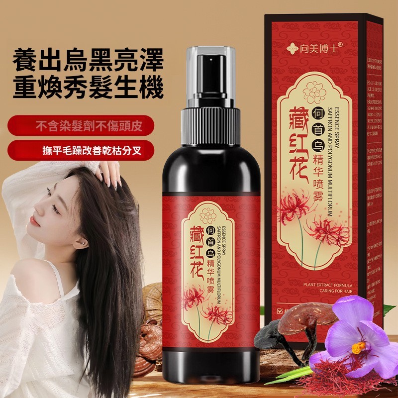臺灣出貨向美博士草本植萃藏紅花黑靈芝黑首烏精華液噴霧喷雾 呵護毛囊 撫平毛躁 改善乾枯分叉 滋润秀发 温和护理