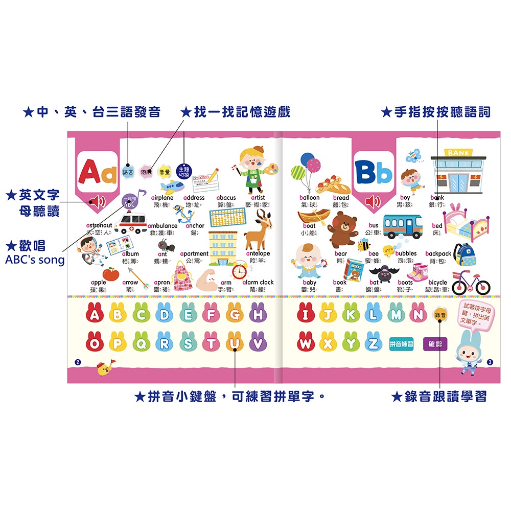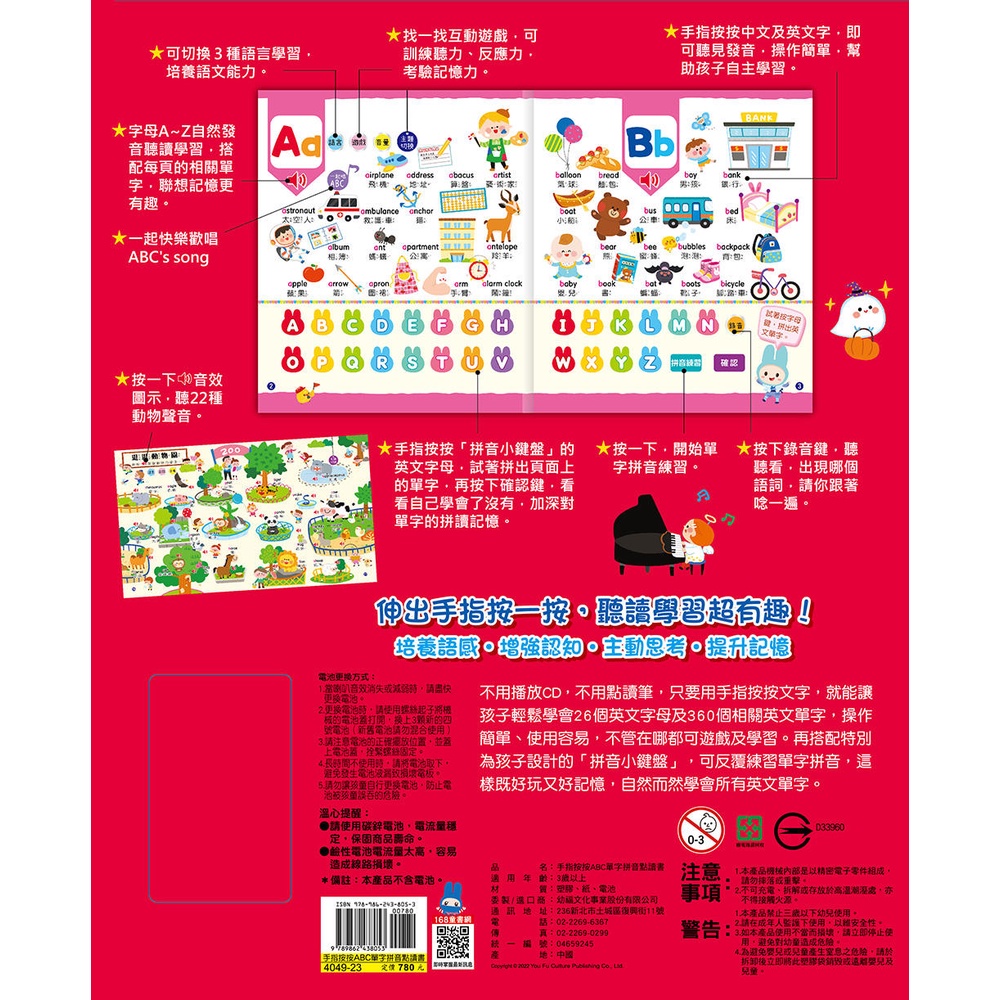 💛現貨💛《幼福》手指按按ABC單字拼音點讀書【中、英、台三語學習,首創英文單字拼音功能】💖小小孩💖