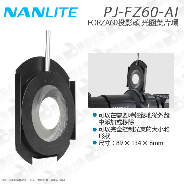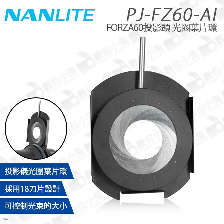 數位小兔【NANLITE PJ-FZ60-AI 南光 FORZA60 投影頭 光圈葉片環】南冠 60B 投影儀 公司貨