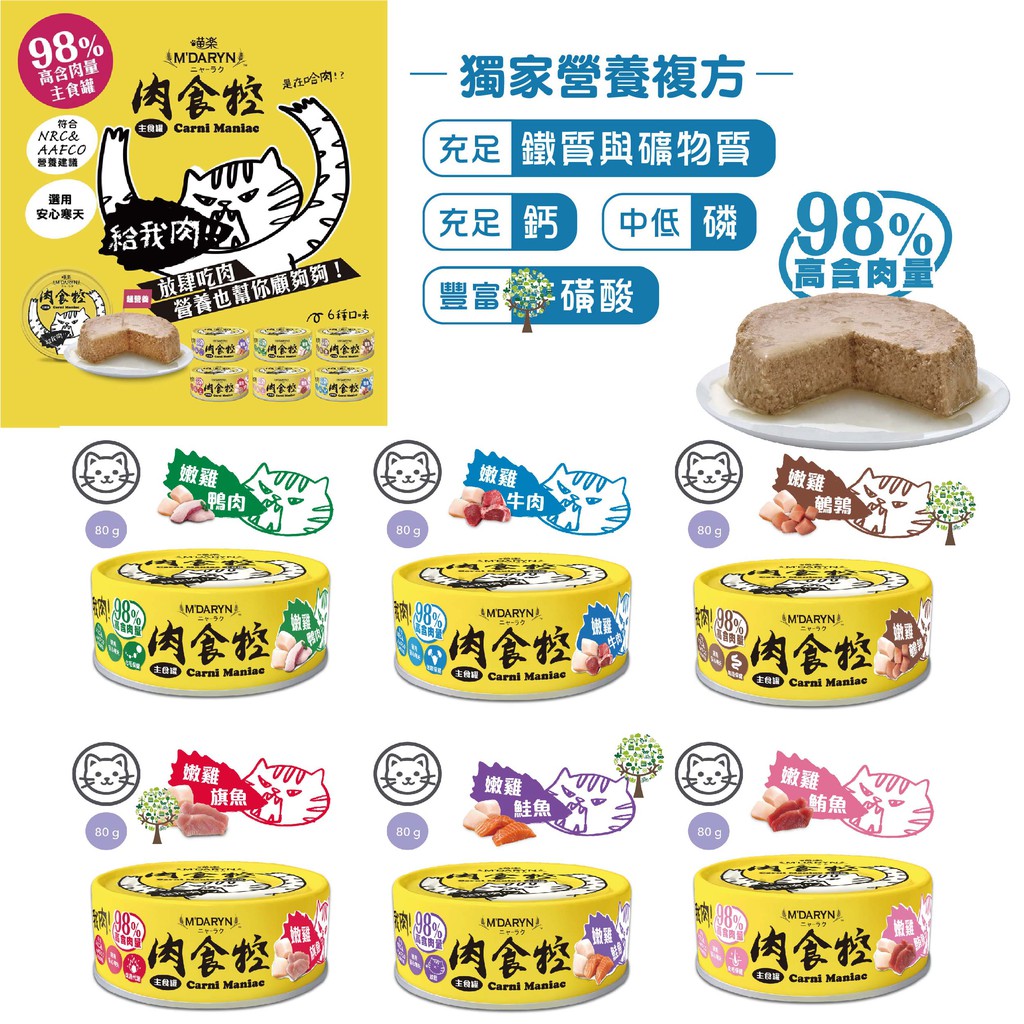 喵樂 肉食控 貓主食罐 80G 貓罐 98% 高含肉量 貓罐 主食貓罐 主食罐 台灣製 腸道 化毛 皮膚 保健