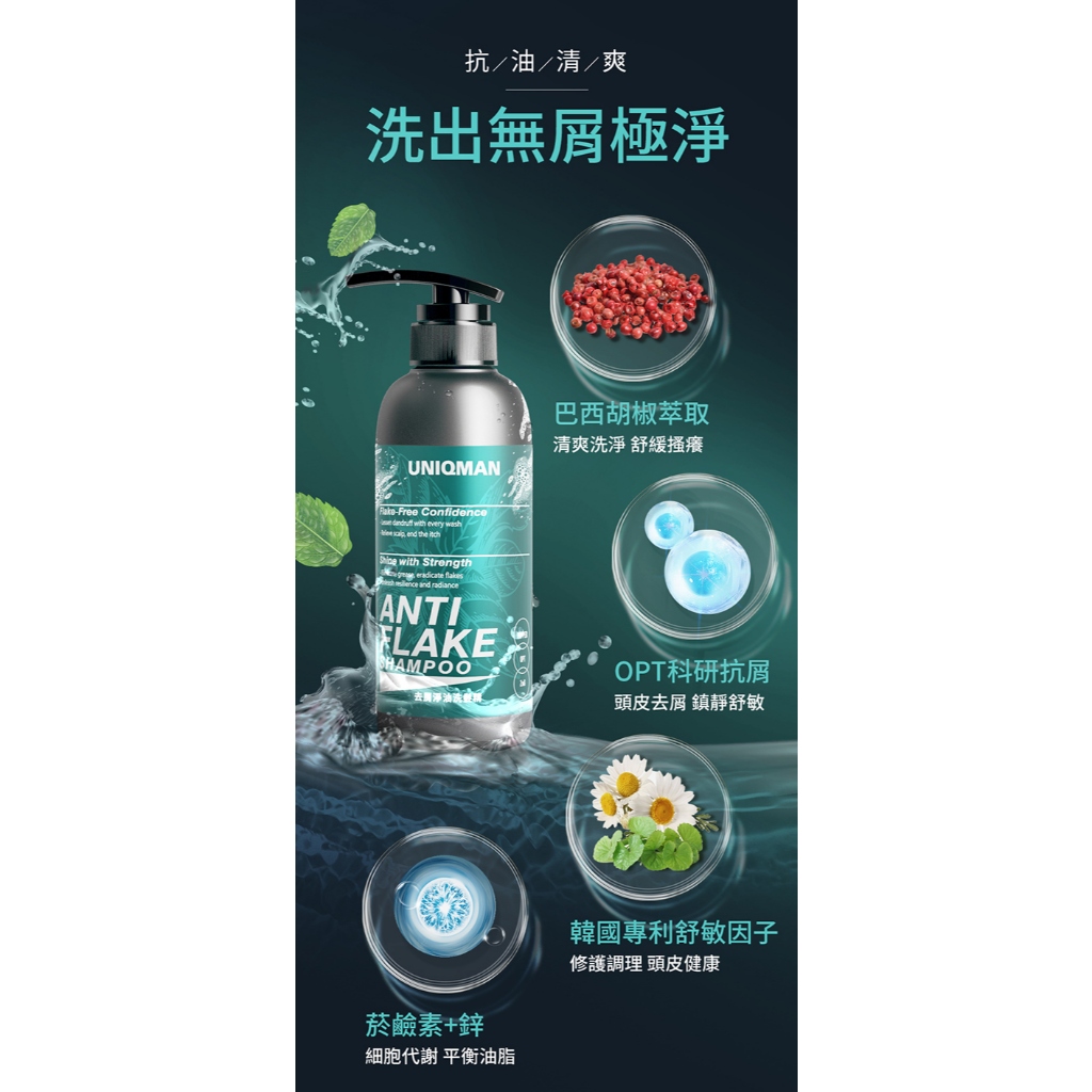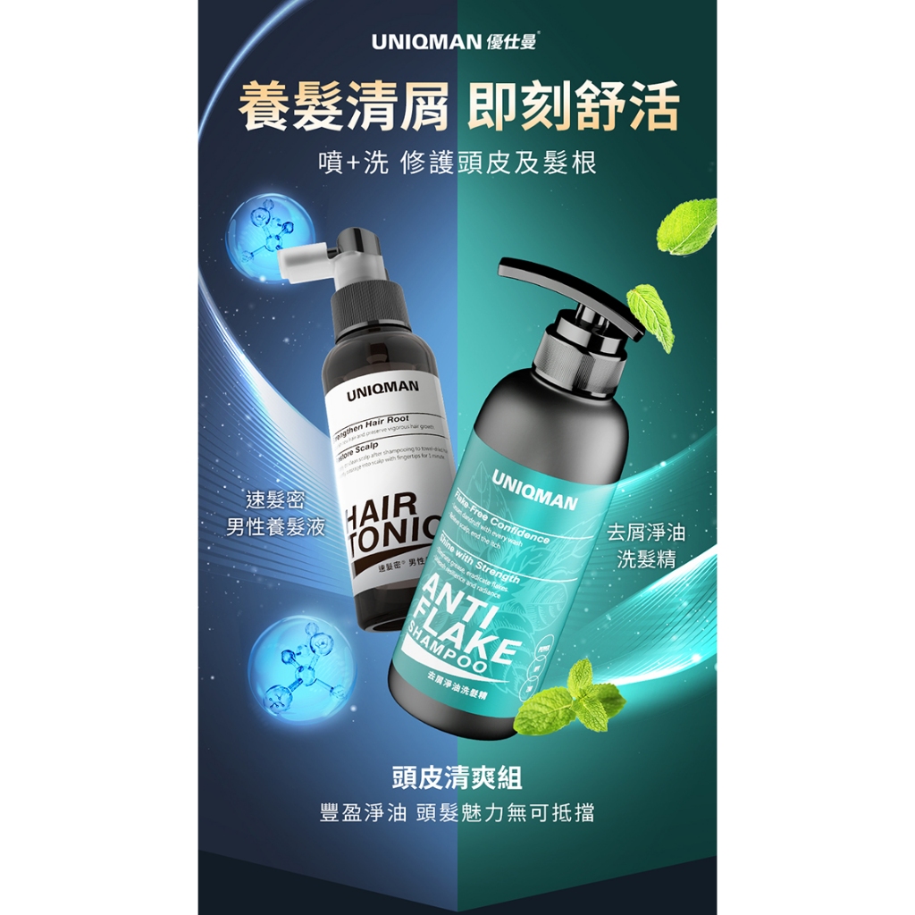 UNIQMAN 頭皮清爽組 去屑淨油洗髮精(400ml/瓶)+速髮密男性養髮液(100ml/瓶) 官方旗艦店