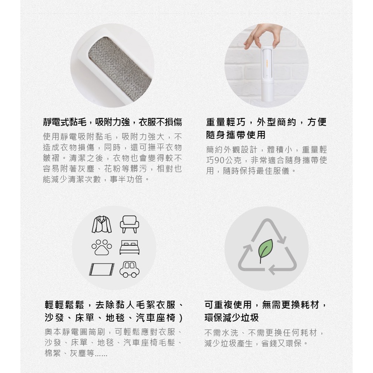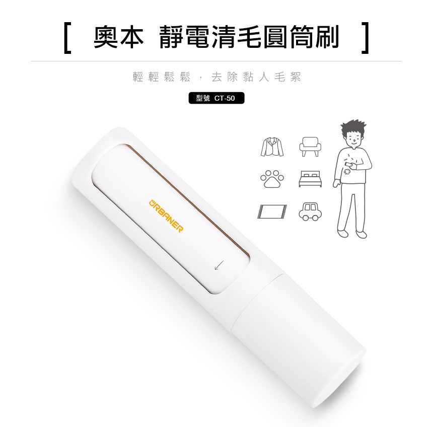 URBANER奧本 靜電清毛圓筒刷 CT-50 去除寵物黏人毛絮 不需替換耗材 (清毛刷/黏毛刷)