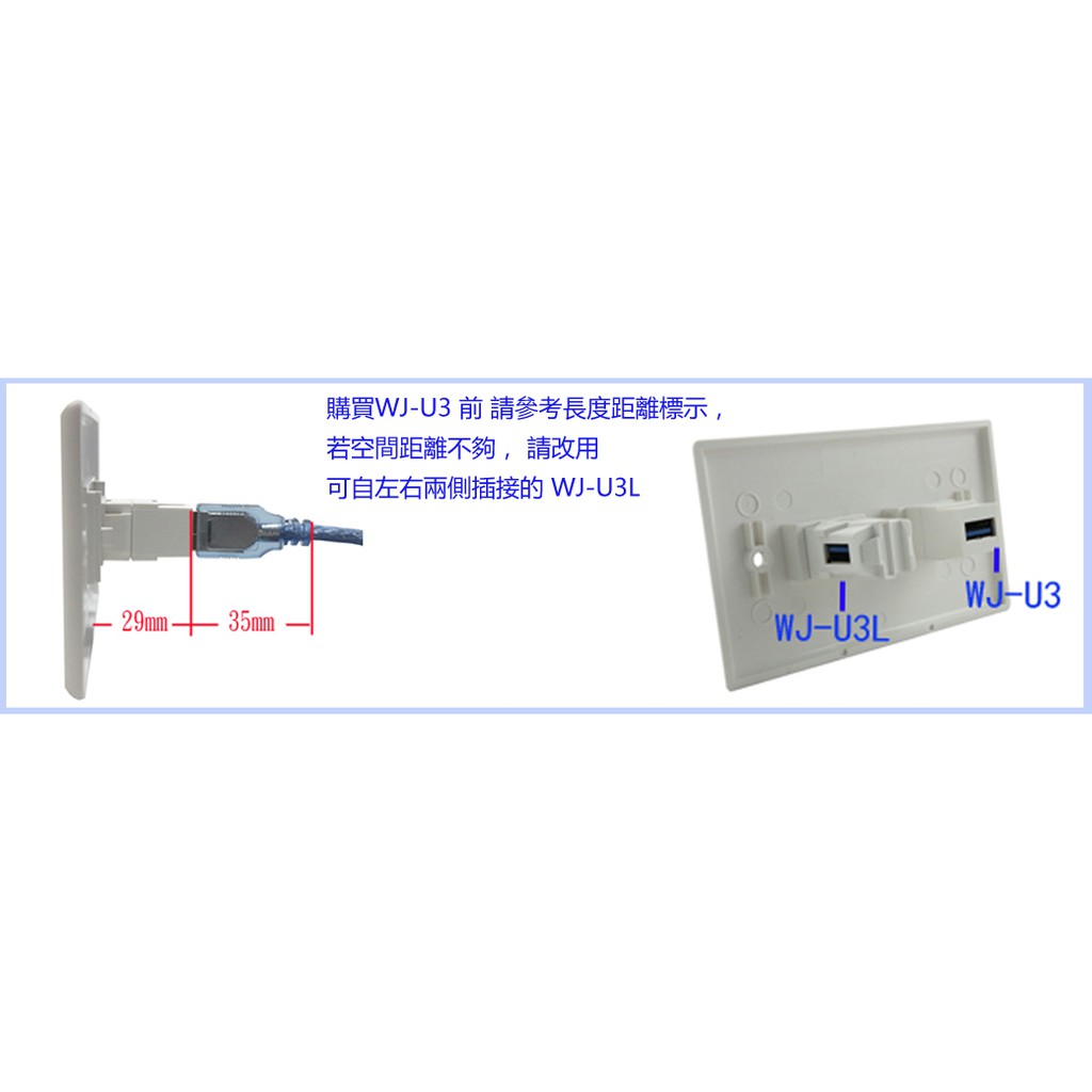 USB 3.0 後接式插座模組 (WJ-U3) SUNBOX