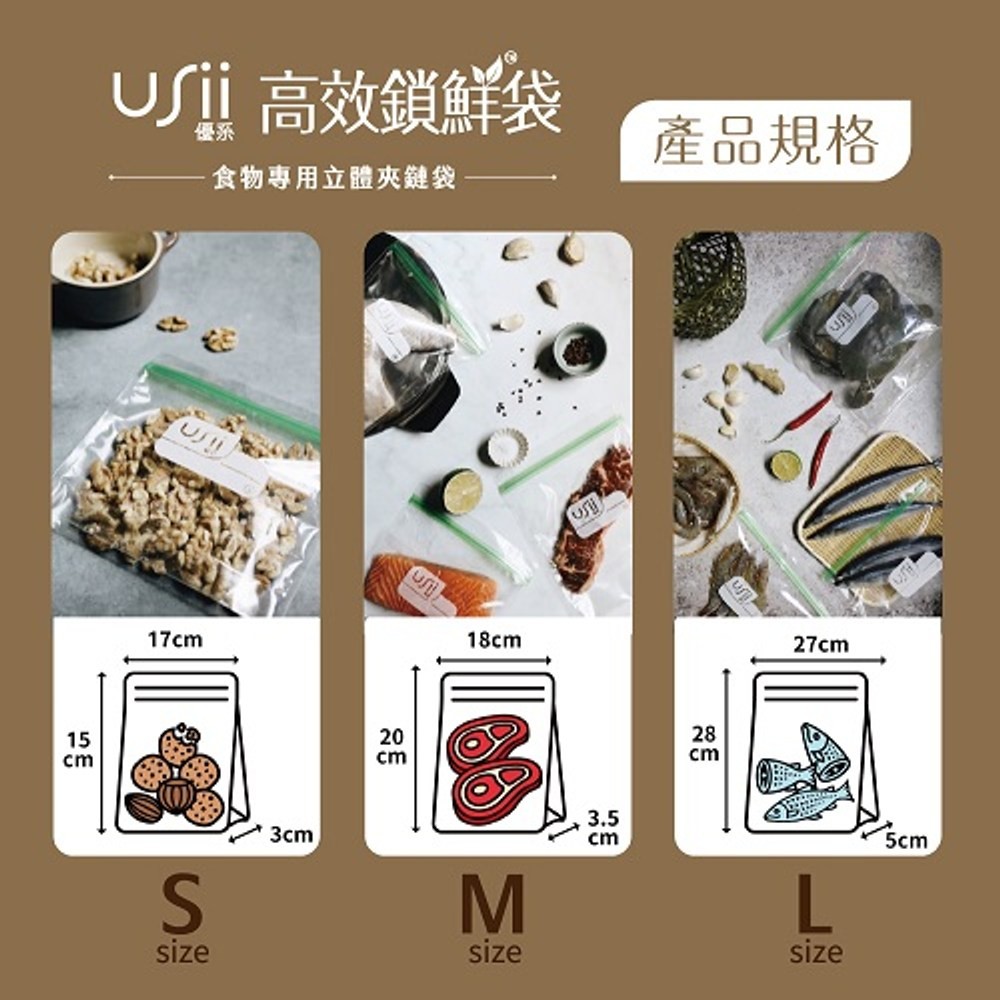 USii優系高效鎖鮮袋-食物專用立體夾鏈袋M款
