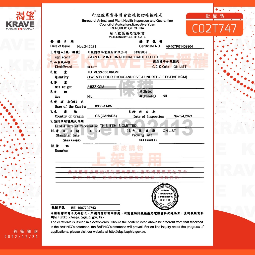 🐱一條貓🐱渴望KRAVE貓飼料 無穀貓飼料 全齡貓飼料 原野鮮雞/羊肉鮭魚/海陸龍蝦 1公斤/2公斤/5.4公斤