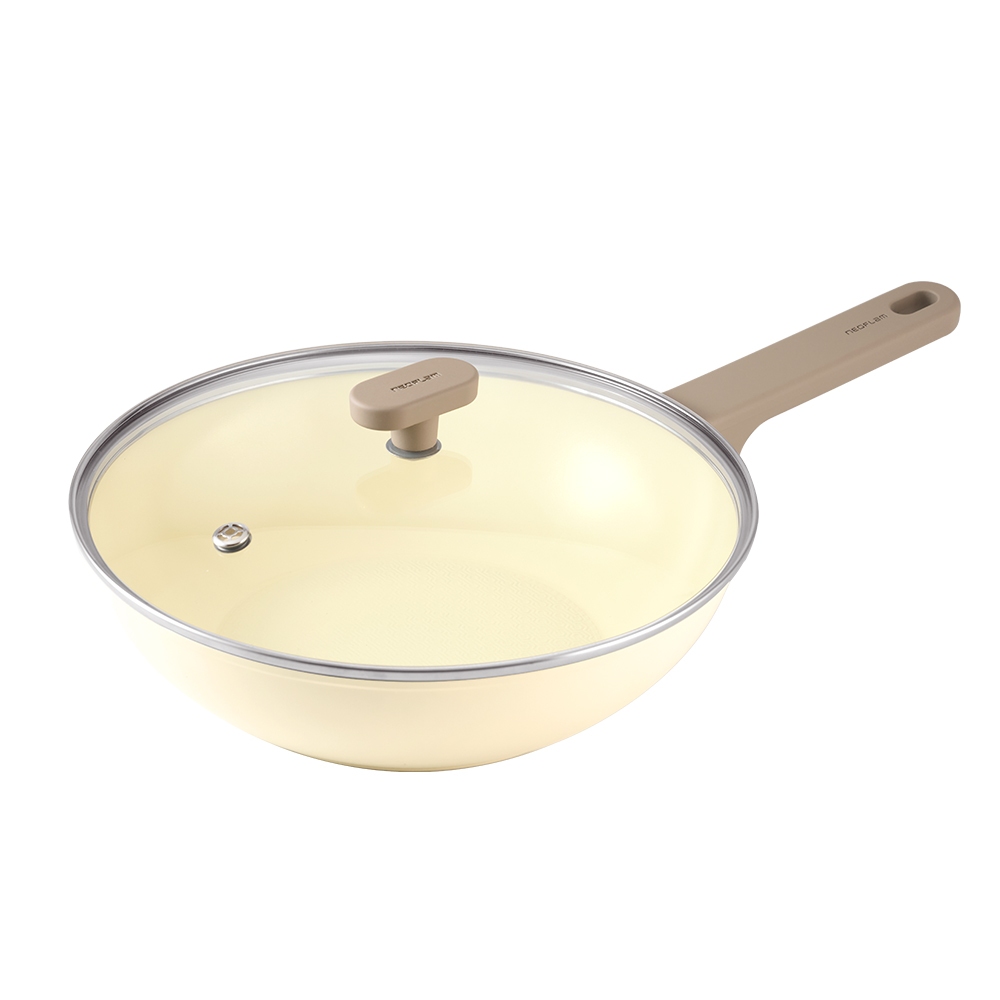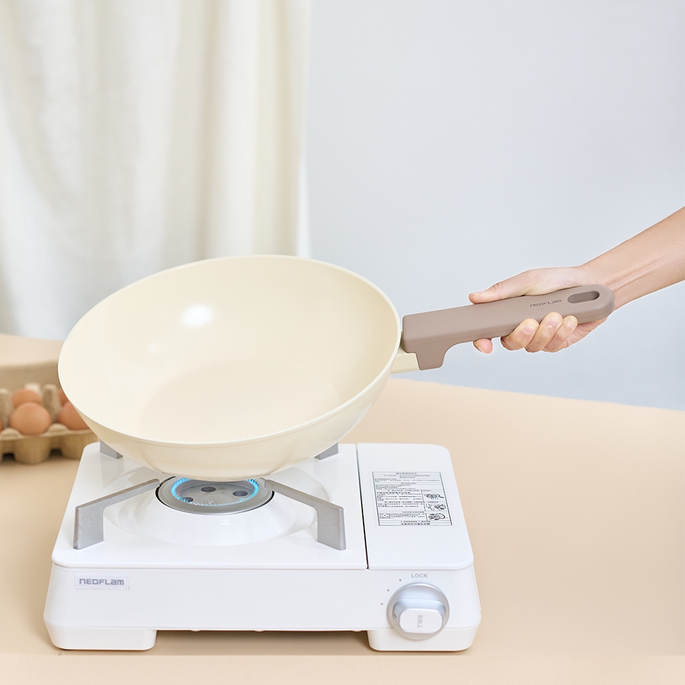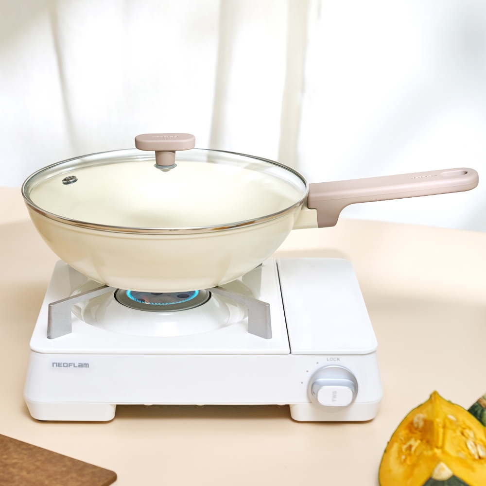 蝦皮獨家-NEOFLAM可可燕麥系列28cm炒鍋(含玻璃蓋/不挑爐具) 贈鍋鏟+湯勺/三德刀/伸縮防潮玻璃調味罐-台灣原