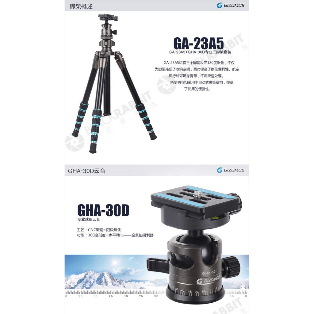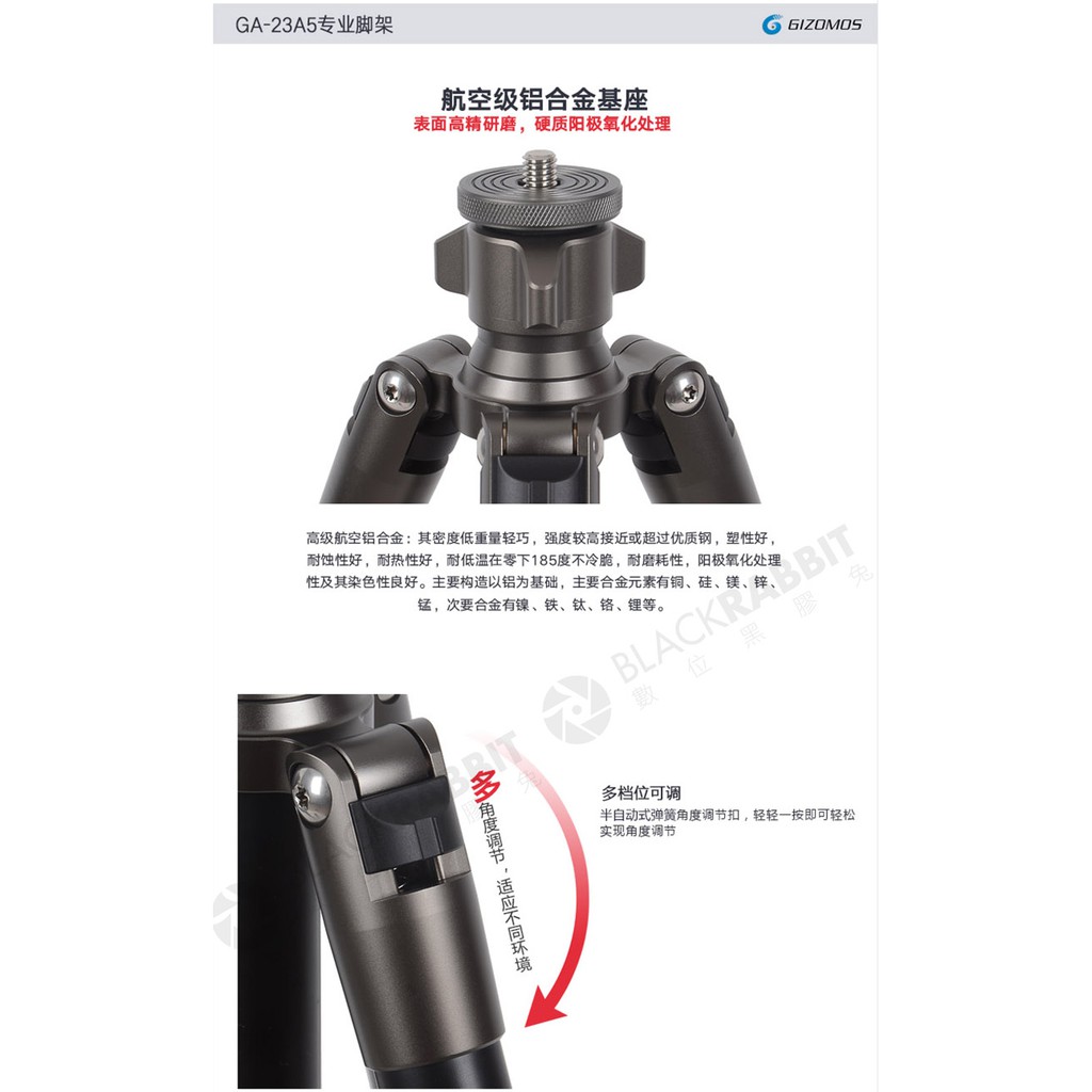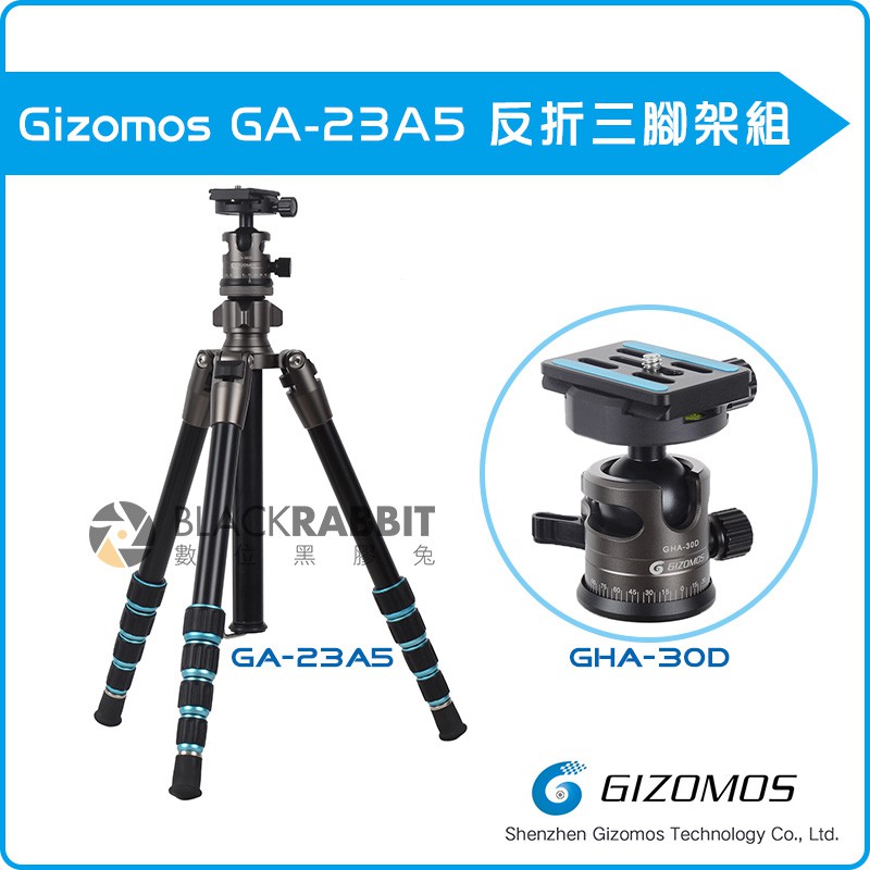 數位黑膠兔 【 Gizomos GA-23A5 反折 三腳架 組 】 承重12公斤 環扣式 旅遊 腳架 雲台 鋁合金