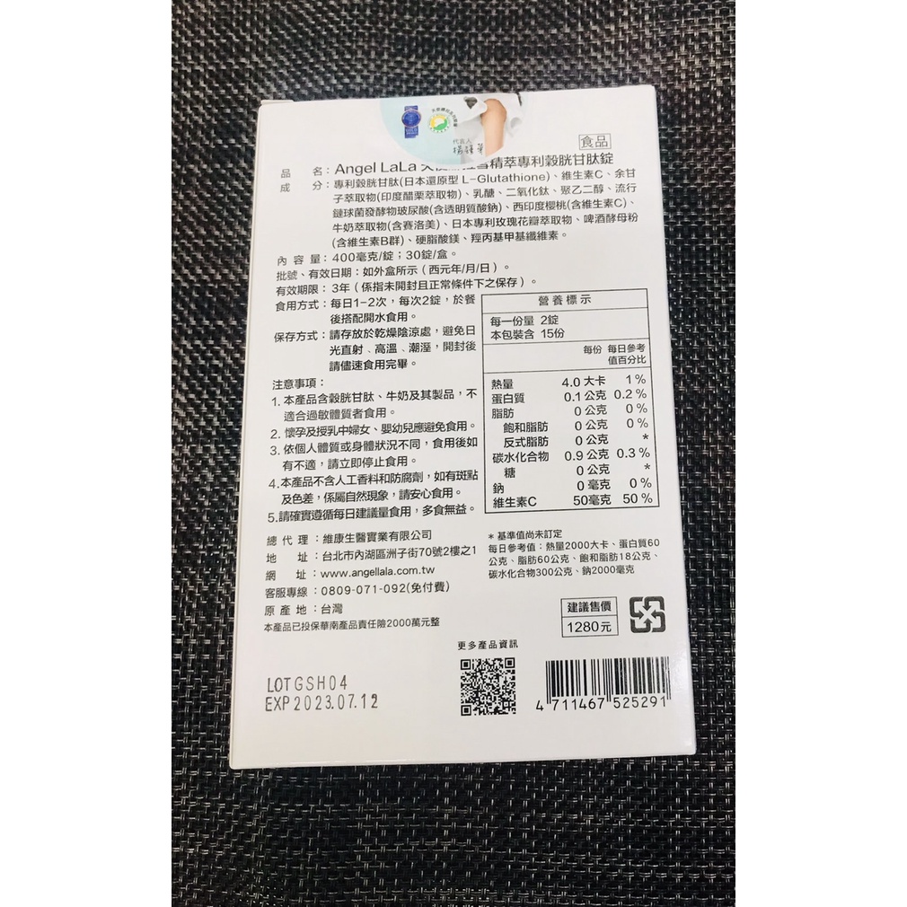 🔥蝦皮代開發票🚀Angel LaLa 天使娜拉☑雪精萃專利穀胱甘肽錠 30錠/盒[最新效期]