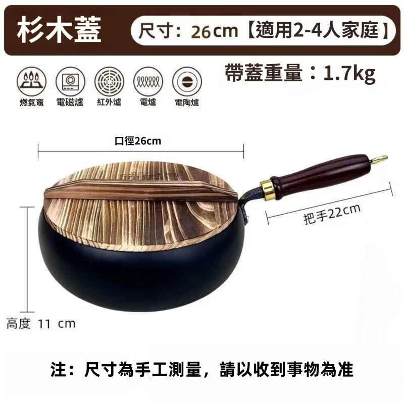 【臺灣現貨】已開鍋章丘大肚鐵鍋 26cm大肚鍋 無塗層不沾鍋 平底鍋 手工鍛造鑄鐵鍋 不挑爐灶 大肚炒鍋 純鐵大肚鍋
