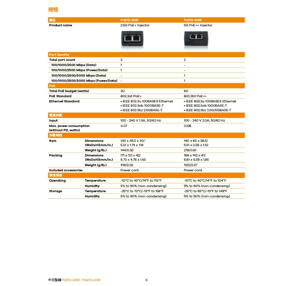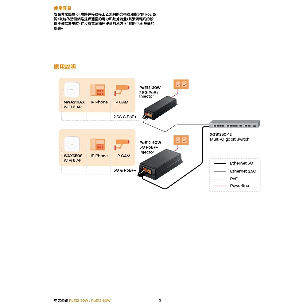 ZYXEL 合勤 PoE12-30W 2.5G PoE+乙太網路電源供應連接器 100M/1G/2.5G 昌運監視器