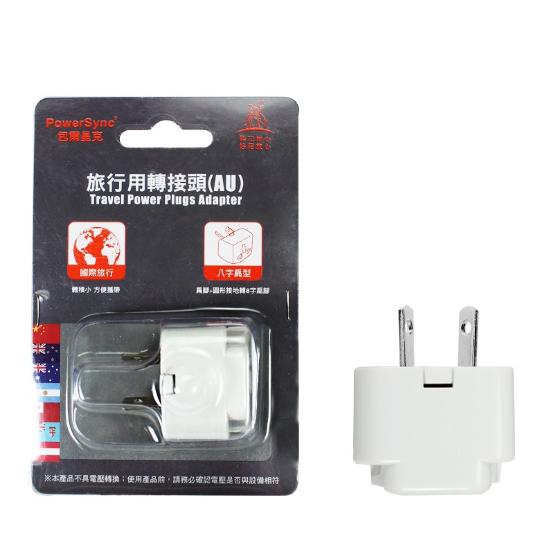 群加 Powersync 旅行用轉接頭(AU)-三插轉8字扁腳(TPATM1AB9A)