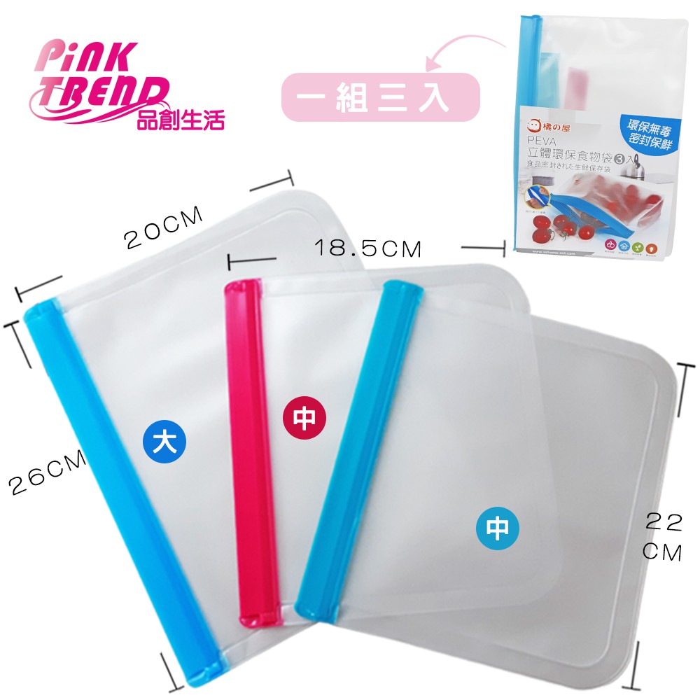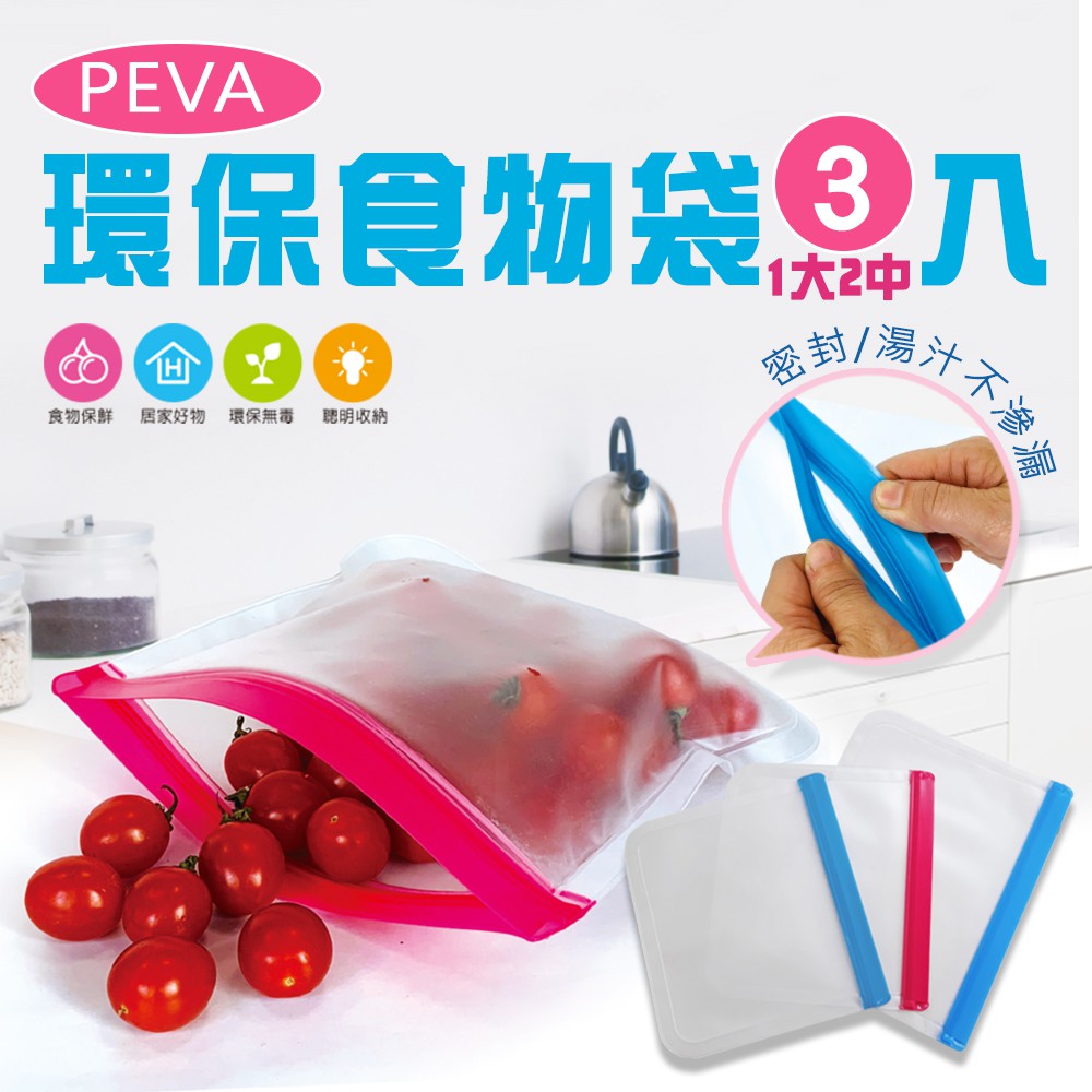 橘之屋 PEVA環保食物袋-3入(1大+2中) 食物分裝袋 保鮮袋 食物袋