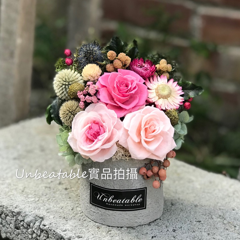 Unbeatable奧斯汀永生玫瑰花盆栽 大地農園永生花乾燥花花禮 母親節禮物 生日禮物 企業贈禮,開幕賀禮花盆